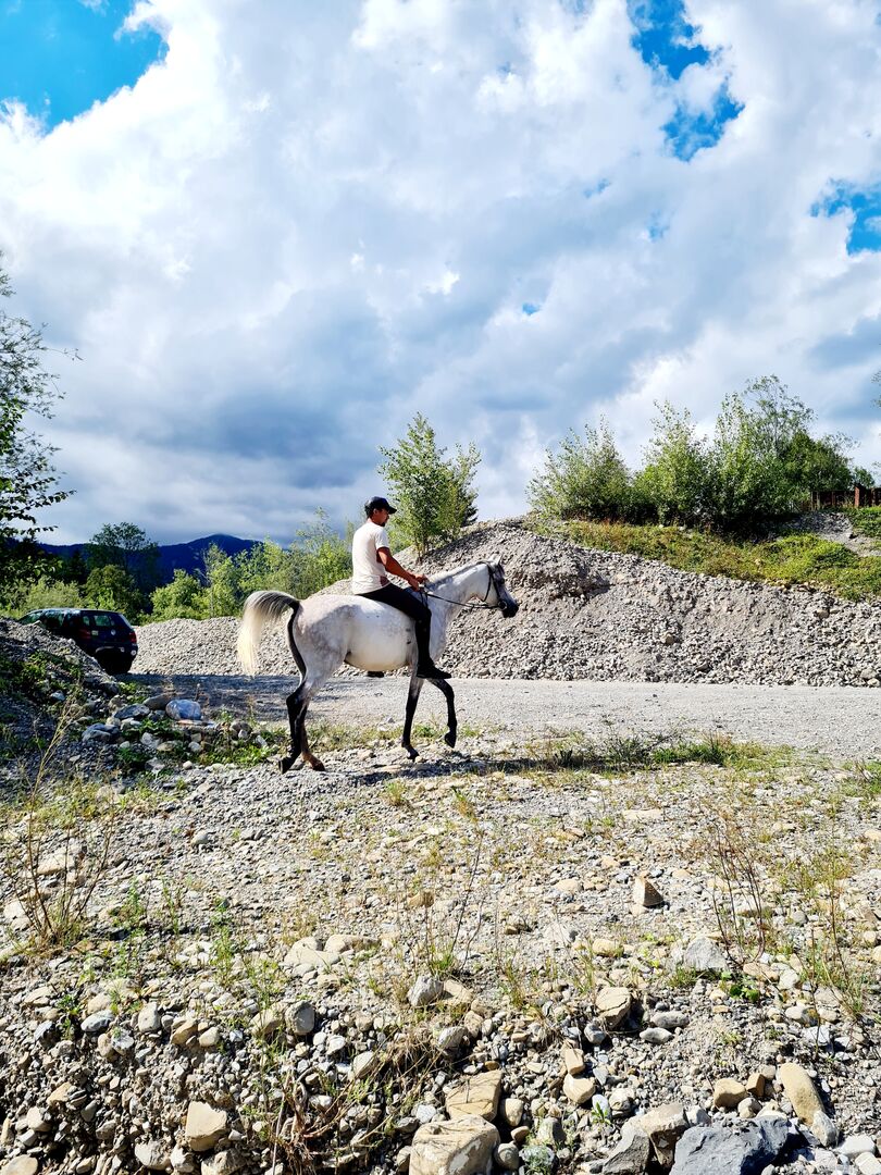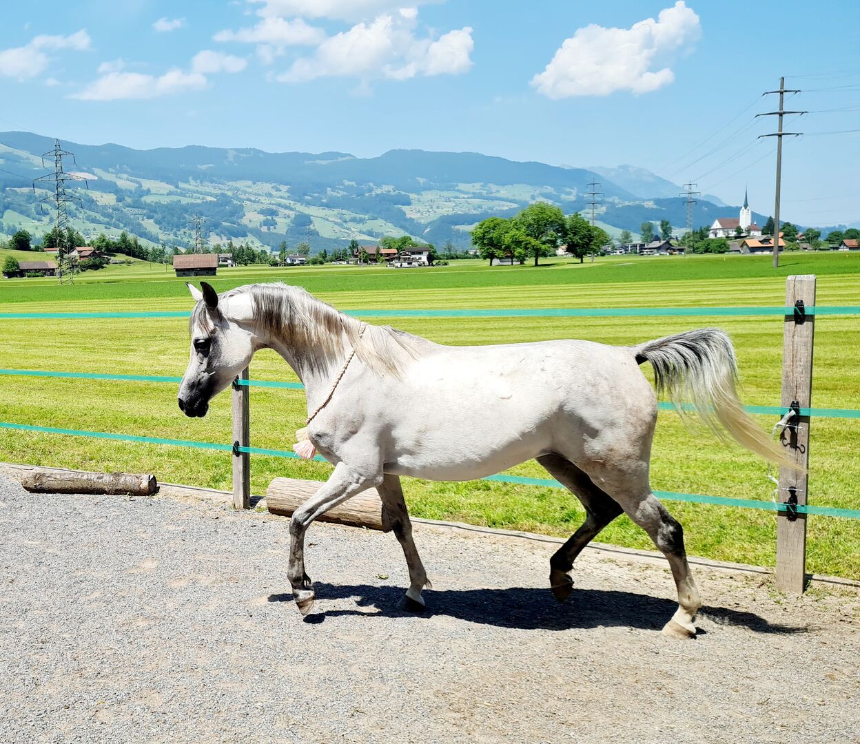 Chęć nauki młodej klaczy arabskiej z najlepszym rodowodem - Alouette ma 6 lat i jest córką znanego na całym świecie ogiera QR Marc. Jest z nami w treningu od początku roku. Miała już źrebaka i od 1 roku przebywa w Szwajcarii. Jest bardzo delikatna i drobno zbudowana, dlatego potrzebuje lekkiego jeźdźca. Jest bardzo chętna do nauki i zmotywowana, zawsze odważnie idzie do przodu. Nie boi się pojazdów, ciągników itp. i jest bardzo przyjaźnie nastawiona do kowala. Jeździ w teren sama jak i w grupie, lubi też iść przed siebie. Jej temperament jest typowy dla araba. Lubi iść energicznie do przodu, a na spacerze jest zawsze szybka. Jest bardzo wrażliwa i reaguje na najmniejsze pomoce, dlatego zawsze jest łatwa w obsłudze. Zdobyła z nami wiele doświadczeń (mosty, ruch uliczny, rowery, woda itp.) i wszystko robi dobrze. Ponieważ jednak jest jeszcze młoda, potrzebuje doświadczonego jeźdźca, który będzie ją dalej rozwijał. Jest na początku swojego życia i z pewnością nadaje się dla ambitnych jeźdźców rekreacyjnych, hodowlanych i ewentualnie w przyszłości ujeżdżeniowych lub rajdowych. Ma lekki słodki świąd, który można utrzymać pod kontrolą przy minimalnym wysiłku. Bardzo dobrze dogaduje się w grupie i jest raczej nisko postawiona. Jest ogólnie ciekawa i otwarta, szuka kontaktu z ludźmi. Nie wykazuje żadnej niegrzeczności, była jeżdżona i lonżowana. Jeśli jesteś zainteresowany mogę wysłać więcej zdjęć i filmów. Oczywiście możemy ją również wypróbować, ale tylko w przypadku poważnego zainteresowania. Oddamy ją tylko w doświadczone ręce i szukamy dla Alouette idealnego nowego właściciela.