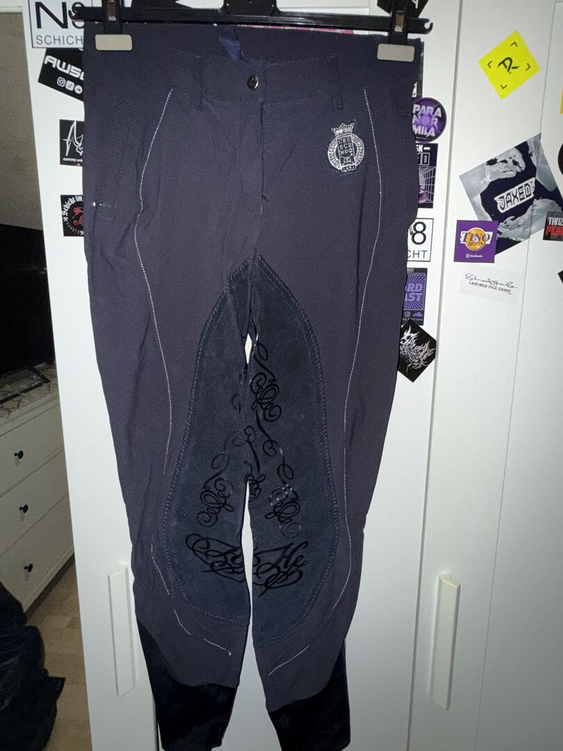 Ciemnoniebieskie bryczesy z pięknym wzorem - Sprzedam granatowe bryczesy jeździeckie z equistore. Rozmiar 38 Bryczesy prawie nie były noszone i są w bardzo dobrym stanie: - Piękny ciemnoniebieski design z ozdobnym wzorem po wewnętrznej stronie - Wysoka jakość wykonania i wygoda noszenia - Idealne do treningu jeździeckiego i zawodów - Elastyczny pas dla idealnego dopasowania