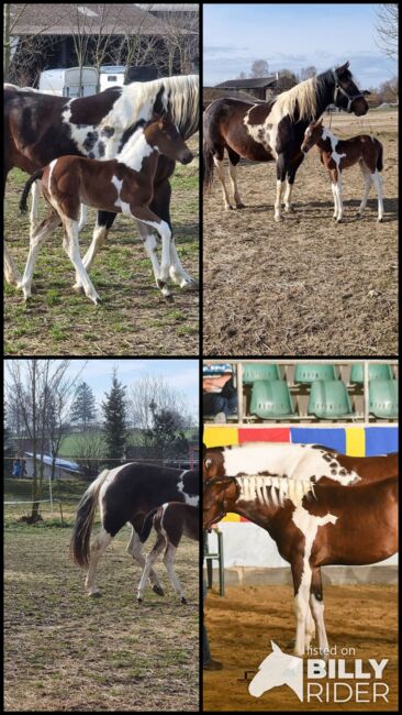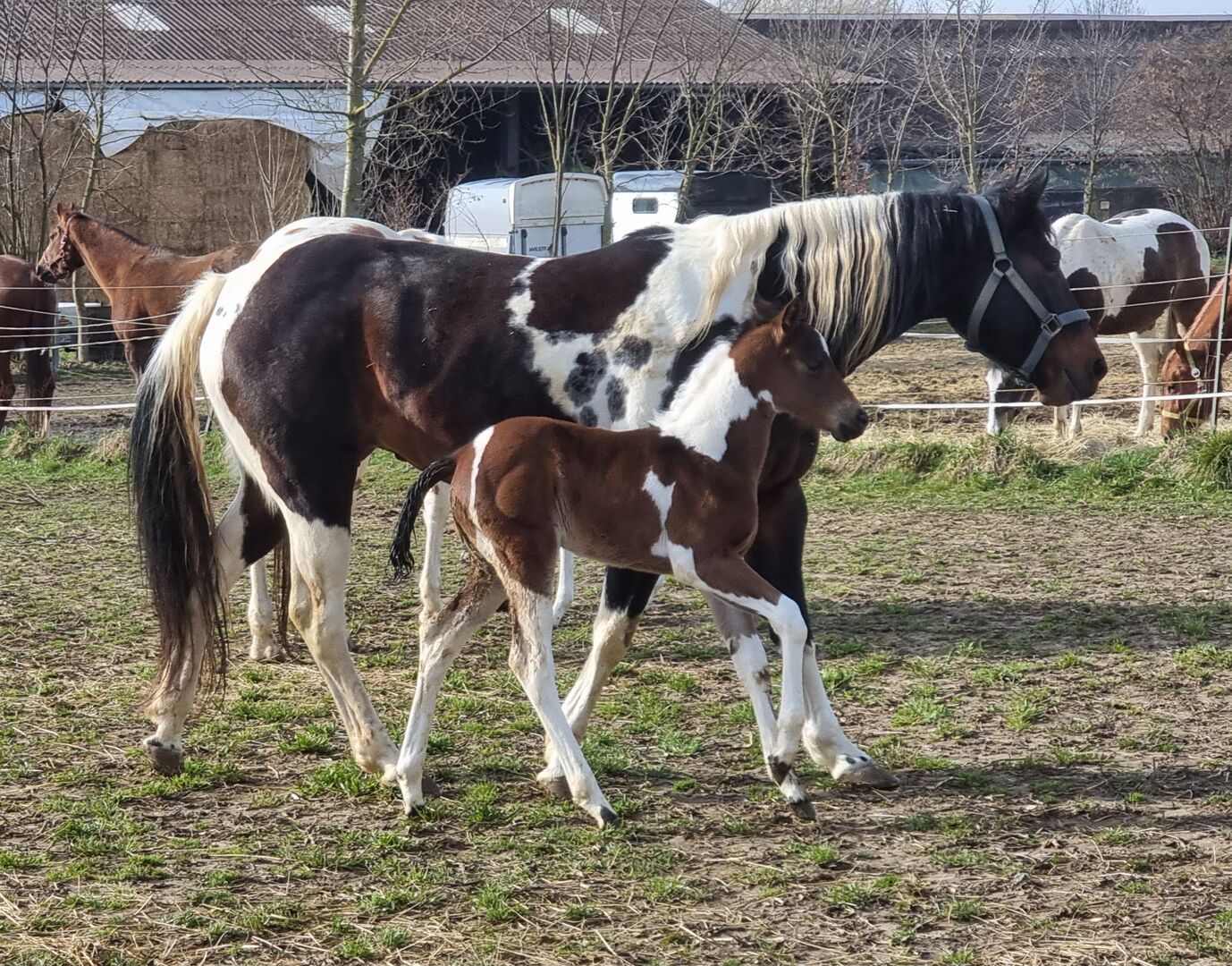 ciężarna klacz czystej krwi rasy paint horse - Ze względu na redukcję stada, ta przyciągająca wzrok klacz szuka nowego domu. Jest sprzedawana jako klacz hodowlana, ale można na niej jeździć. Princess urodziła się w 2014 roku i mierzy 152 cm wzrostu. Przyciąga wzrok swoją długą grzywą, którą również przekazuje dalej. Jest zwarta i prawidłowo zbudowana, z prostymi nogami. 7 Panel n/n. Czystej krwi dla tobiano TOTO. Zna stajnie otwarte i boksy, a także pastwiska. Princess ma bardzo słodki charakter, jest bardzo towarzyska i bardzo dobra w obsłudze. Klacz wykazuje bardzo dobre podstawowe chody z wygodnym kłusem i bardzo płynnym kłusem. Ma solidne podstawowe szkolenie westernowe we wszystkich trzech chodach. Do tej pory nie była zbyt często jeżdżona, ponieważ jest używana tylko jako klacz hodowlana. Jest źrebna ogierem Aint It The Blues w połowie lutego 2024 roku i nie ma problemów z zaźrebieniem. Ona również jest tylko na sprzedaż, ponieważ potomstwo, również po Aint It The Blues, zostanie zachowane.