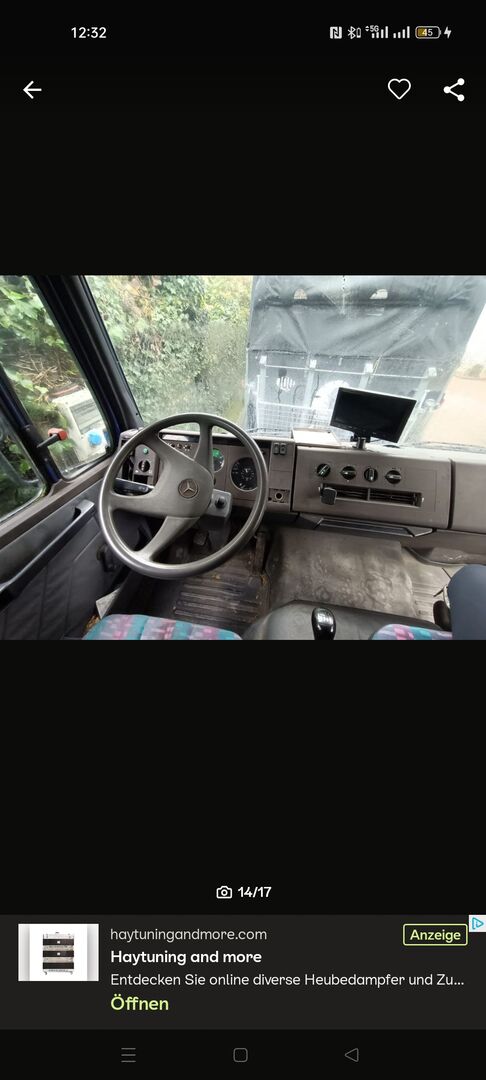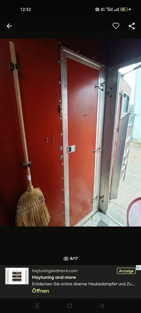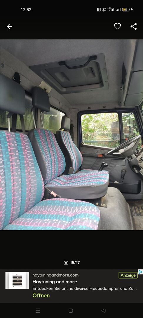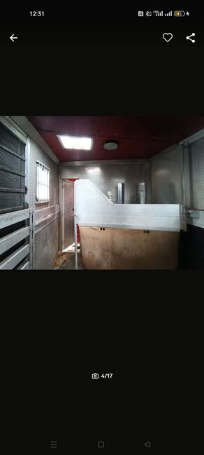 Ciężarówka konna - Ciężarówka konna 7,5t z nadbudową Dickenherr na Mercedes Benz 814L, rok budowy 09-1993, stan KM 352800 z zawieszeniem pneumatycznym, TÜV do 03/26. 4 zatoki dla koni (3 w kierunku jazdy, 1 poprzeczna), regulowana przegroda, nadzór kamer. Dostęp przez szeroką rampę z barierą boczną. Duża szatnia z dostępem z zewnątrz i dostępem do strefy dla koni. Pomieszczenie z trzema stojakami na siodła i dużą ilością miejsca do przechowywania. Rdza związana z wiekiem na listwach i ramie pomocniczej (nieszkodliwa). Kabina z trzema siedzeniami i włazem dachowym, główny wyłącznik akumulatora do ochrony akumulatorów.