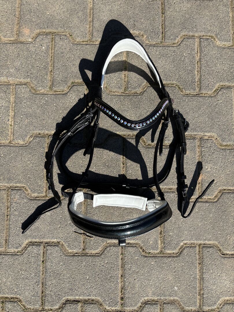 CLAIRDIGE HOUSE Snaffle Vernon - Sprzedaję moją rzadko używaną uzdę z CLAIRDIGE House. W komplecie lejce i paski sznurkowe Rozmiar:COB Kolor czarny Możliwa wysyłka za pobraniem!