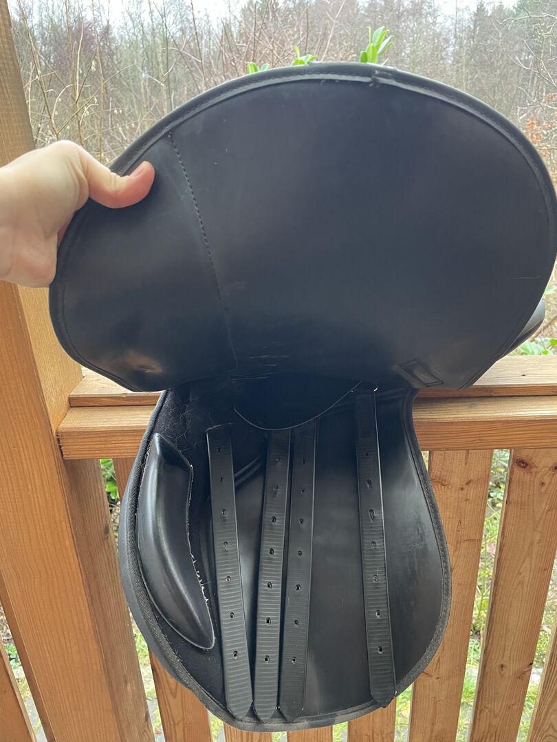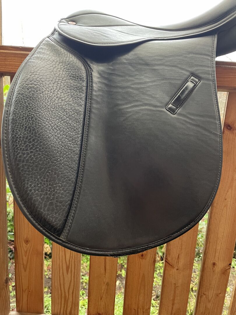 Claridge House Saddle - Oferuję tutaj siodło Claridge House. Powinno to być 17 miejsc. Siedzisko o wymiarach 43 cm Pomosty są zdejmowane. Stan techniczny można sprawdzić na zdjęciach. W razie jakichkolwiek pytań proszę o kontakt.