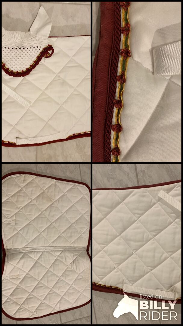 Cristina Sport Set white red VS Saddle Pad Fly Cap - W ofercie mało używany pad pod siodło firmy Cristina Sports i pasujący do niego czaprak na muchy. Ujeżdżanie z formą VS focus