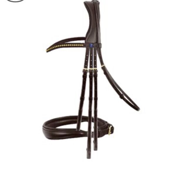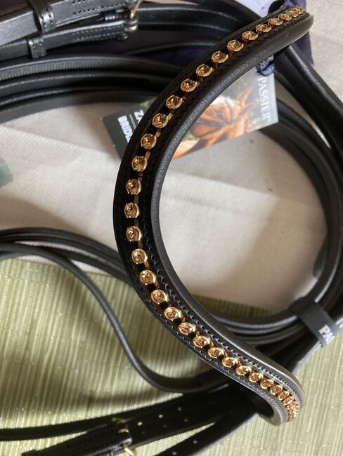 Curb Passier Dream, rozmiar WB - Sprzedaję krawężnik szwedzkiej firmy Passier w kolorze czarnym z mosiężnymi okuciami i kamieniami Havana Topaz. Krawężnik jest zupełnie nowy z etykietą i torbą do przechowywania. Zostanie wysłany w OVP.