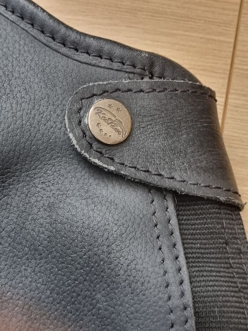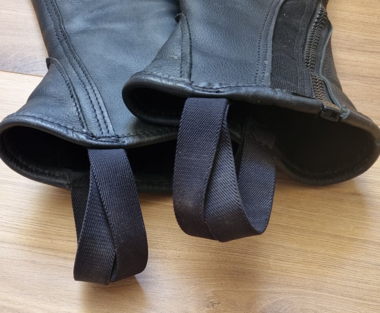 Czapki jeździeckie - Czapki jeździeckie Kentauer Livorno w kolorze czarnym wysokość 44 szerokość 35 Te czapsy jeździeckie są wykonane z miękkiej pełnoziarnistej skóry bydlęcej i są bardzo wytrzymałe. Zamek błyskawiczny znajduje się z boku z elastyczną wstawką. (lekkie zużycie po prawej stronie) Skóra jest bardzo zadbana, lekkie ślady użytkowania.