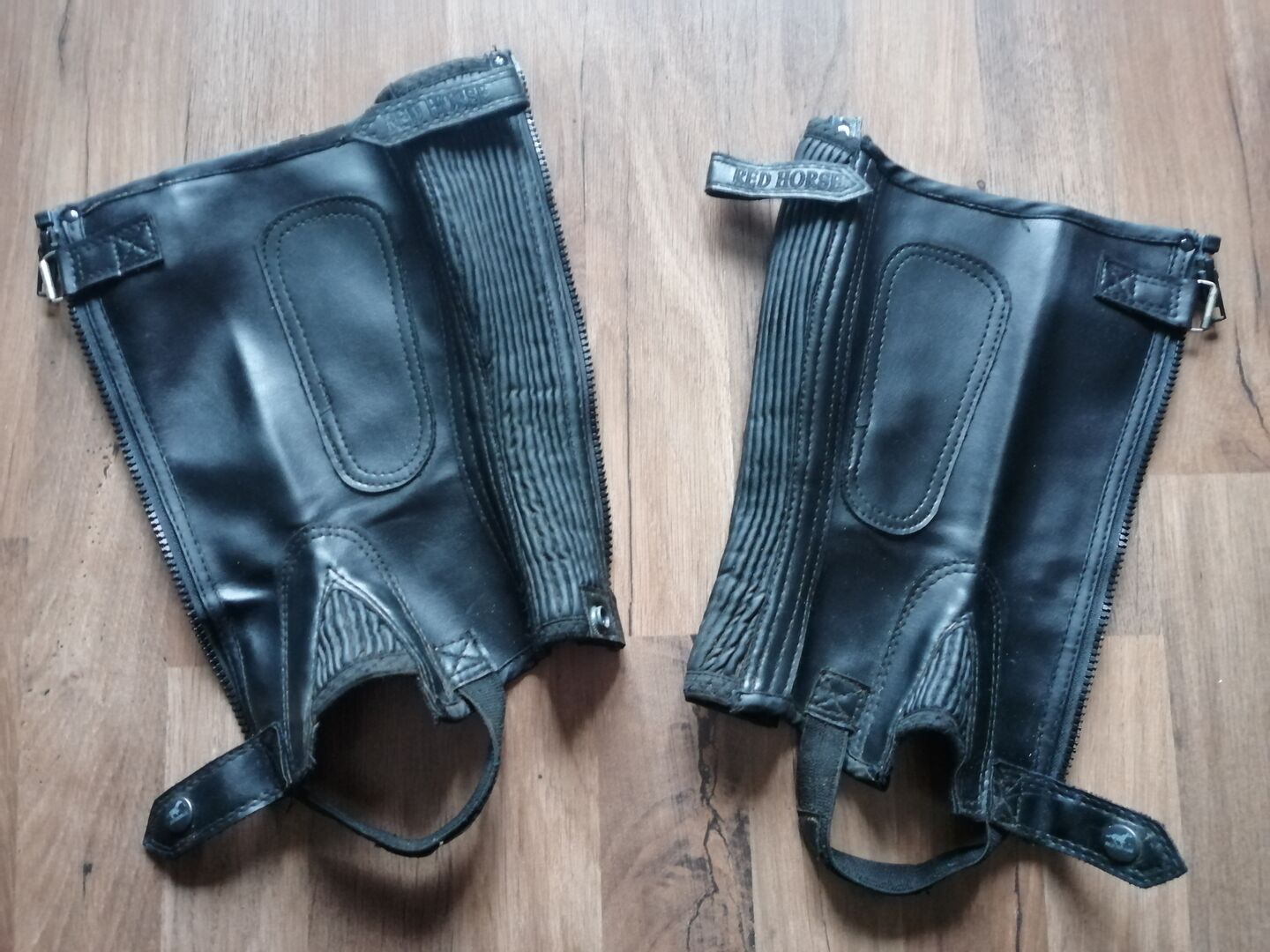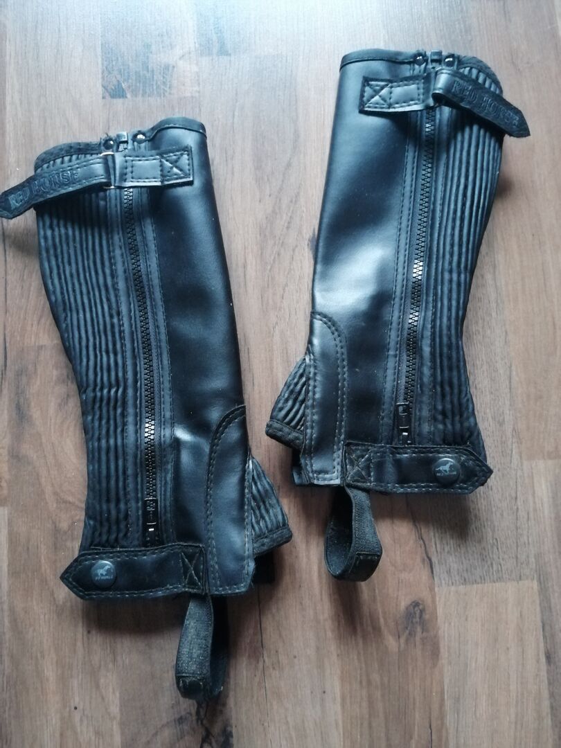 Czapki jeździeckie dla dzieci /rozmiar 8 - Sprzedajemy ok. 5 letnie czarne dziecięce czapeczki jeździeckie mojej córki firmy Red Horse. Rozmiar 8. Nosiła je przez 1 tydzień na obozie jeździeckim. Czapki były więc noszone tylko przez bardzo krótki czas, dlatego nie posiadają prawie żadnych śladów użytkowania na materiale. Materiał to imitacja skóry. Czapki są lekkie i dzięki gumowej wstawce z tyłu dobrze przylegają do dolnej części nogi. Wewnętrzny polar sprawia, że są wystarczająco grube i wygodne w noszeniu.