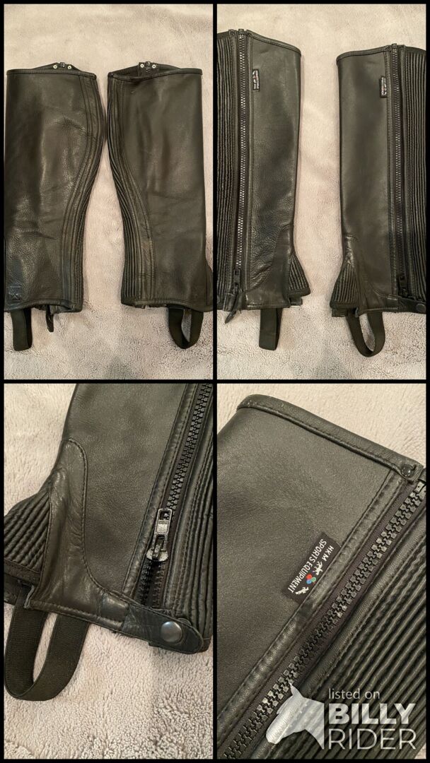 Czapsy jeździeckie HKM Model: Star wykonane ze skóry - Sprzedaję parę czarnych czapsów jeździeckich HKM, które nie były zbyt często noszone, ponieważ przestawiłem się na jazdę western.