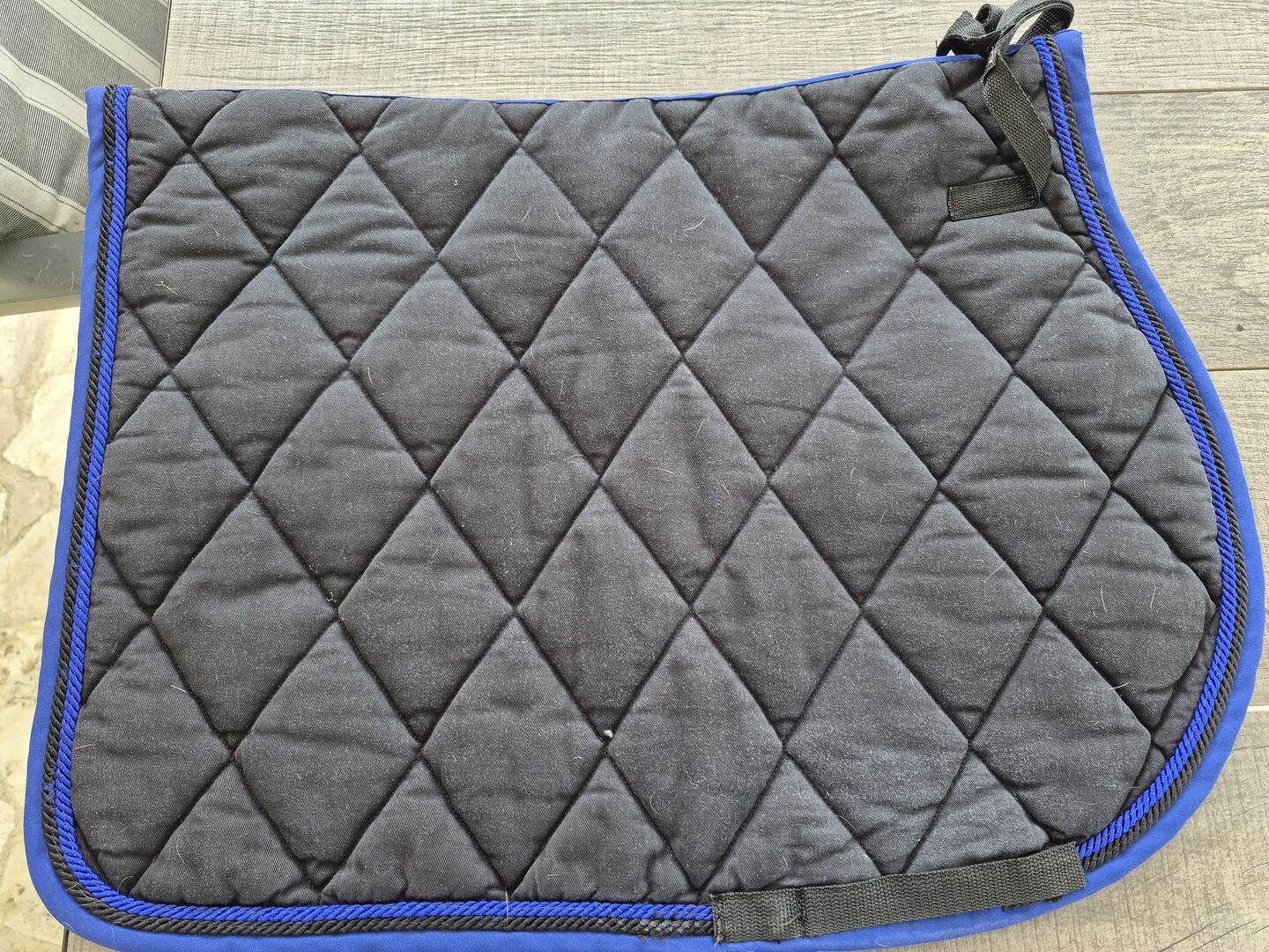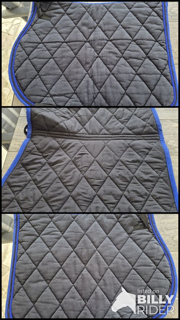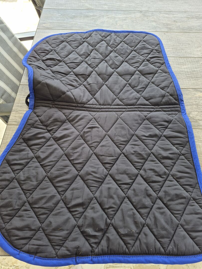 Czarna podkładka pod siodło Jockey z niebieską krawędzią sznurka w rozmiarze VS. - Sprzedam zadbaną, czarną podkładkę pod siodło marki Jockey z niebieską lamówką w rozmiarze VS.