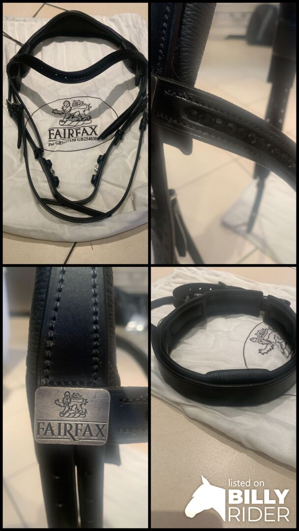 Note. For size explanation visit Fairfax website Bridle and nose band are both LARGE. Never used as sadly bought and an injury meant we couldn’t do dressage anymore. Fairfax bridles are designed so they can be interchanged. Known for their anatomical research and is designed specifically to improve your horses way of going. For more information on Fairfax products products. Visit www.Fairfaxsaddles.com