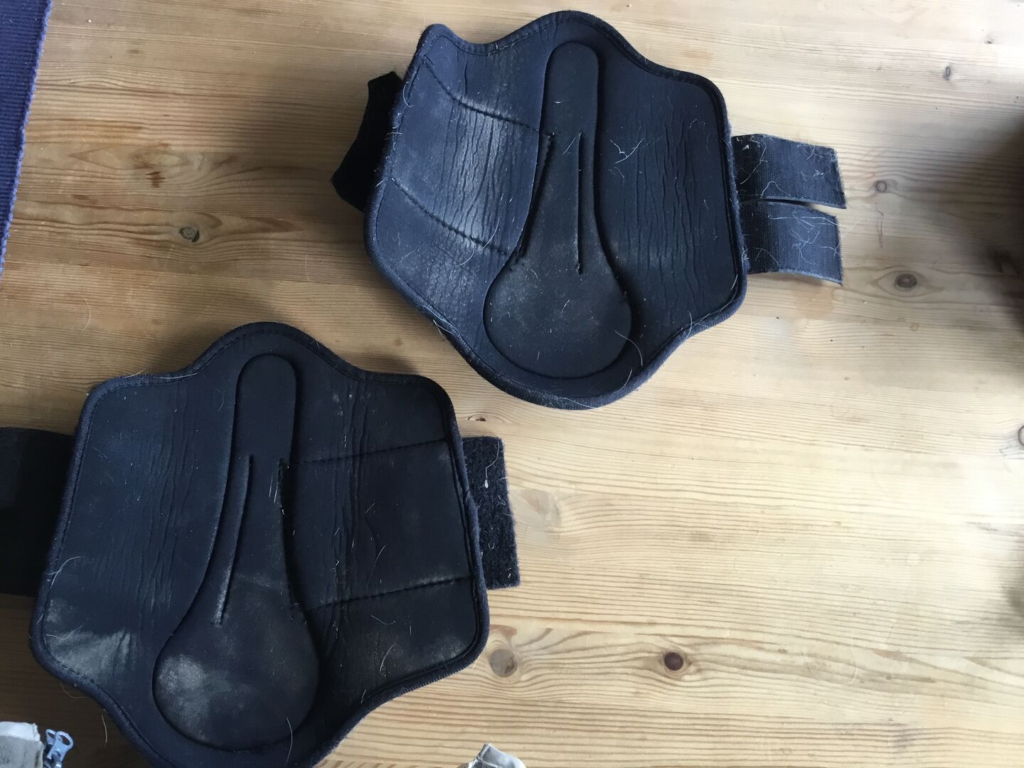 Czarne getry tylne Horsefriend Protect rozmiar S - Sprzedam parę czarnych getrów na tylne nogi w rozmiarze S, w kolorze czarnym. Zapięcia na rzepy doskonale się zamykają. Getry zostały wyprane, ale nadal widać na nich włosy i resztki jedzenia.