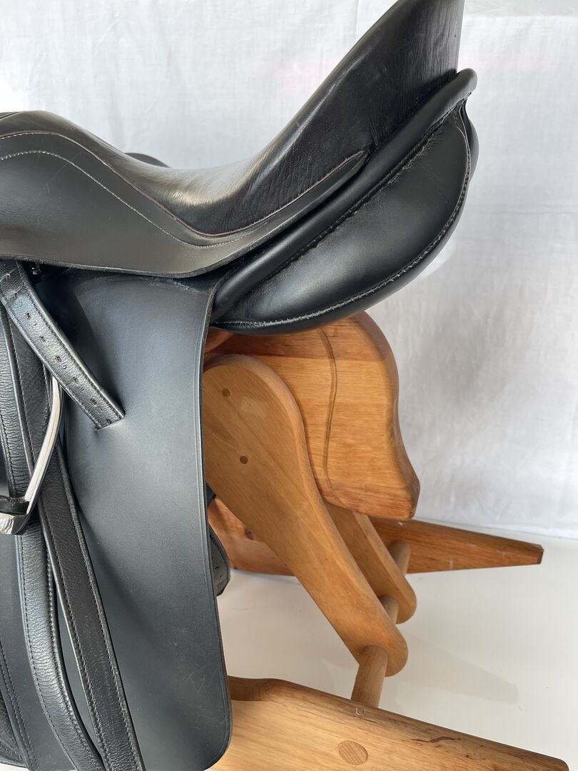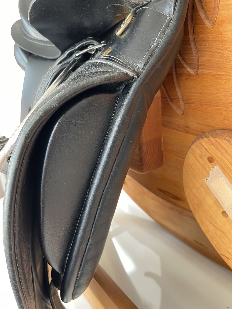 Siodło było raz padokowane, poza tym bez zmian. Szerokość łęku została zmierzona przez rymarza na 28, najwyraźniej została zmieniona po wyprodukowaniu.