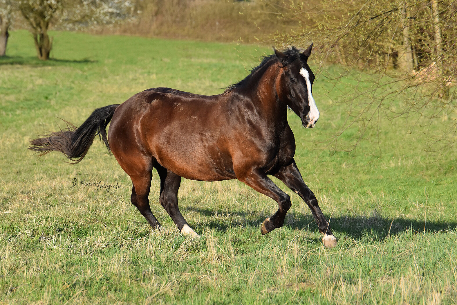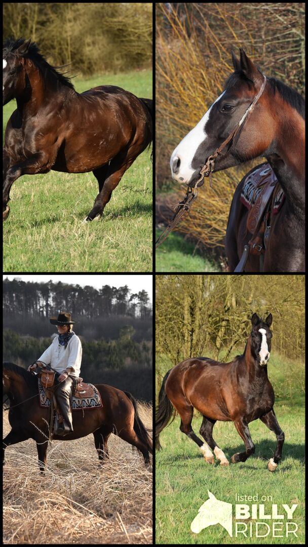 Czarno-brązowa, kochająca klacz rasy Quarter Horse - Lokalizacja: 73660 Urbach Wee Dragonfly przyciąga wzrok. Klacz rasy Quarter Horse zachwyca nie tylko swoim wyglądem, ale także mocną budową, wspaniałym umaszczeniem, a przede wszystkim bardzo kochającym charakterem. Urodziła się w 2010 roku i mierzy 148 cm wzrostu. Wee Dragonfly jest zorientowana na ludzi, bardzo słodka i przechodzi z tobą przez grube i cienkie. Klacz była trzymana wyłącznie w otwartej stajni i jest łatwa w karmieniu. Podkuta z przodu. Fly ma letnią egzemę, którą latem można leczyć derką przeciw egzemie. Klacz ma dobre podstawowe szkolenie westernowe i była jeżdżona rekreacyjnie. Ma wszechstronne doświadczenie pokazowe. Jest pewna siebie w terenie i jest zaznajomiona z jazdą w terenie. Nadawałaby się również dla początkujących jeźdźców, jeśli są w stanie się wykazać. Wee Dragonfly ma solidny rodowód reiningowy. W jej rodowodzie znajdują się Hollywood Jac 86, Freckles Playboy, Hes A Steppin Jac i Taco Lena. Wspaniały koń, z którym można spędzić wiele przyjemnych godzin. Sprzedany prywatnie.