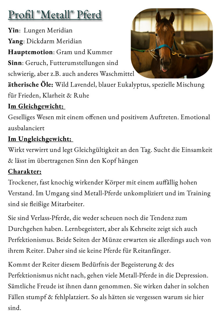 pokazać podstawową energię 📌 pokazać główne emocje wyjaśnić charakter konia ujawnić, do którego żywiołu należy twój koń Zapewnić przegląd tego, czy potrzebne jest wsparcie energetyczne (równowaga vs brak równowagi) pokazanie korzystnych olejków eterycznych dla tego typu konia