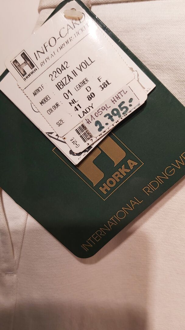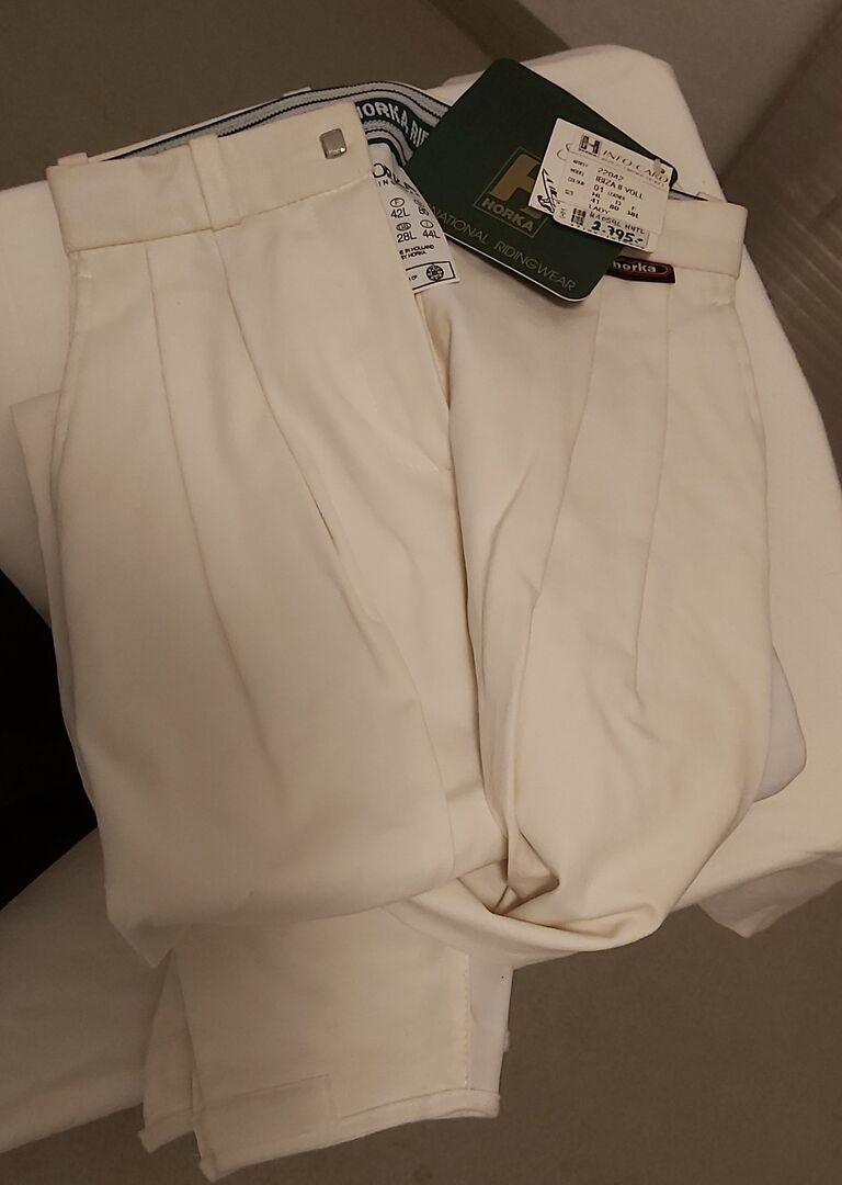 Damskie bryczesy jeździeckie marki Horka - NOWE damskie bryczesy jeździeckie Horka, białe, skórzane siedzisko, rozmiar: 40 długie; Obniżka z 203 € do 35 €! Cena wciąż do negocjacji!
