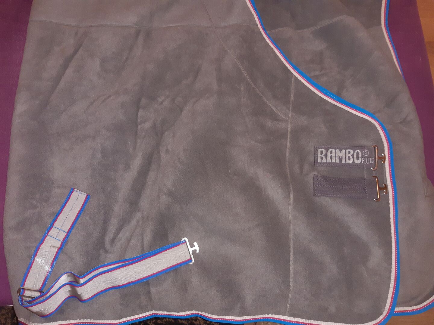 Bardzo ładna i gruba derka potowa, była tylko do założenia na konia i od tego czasu tylko w szafie, szkoda.
