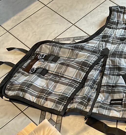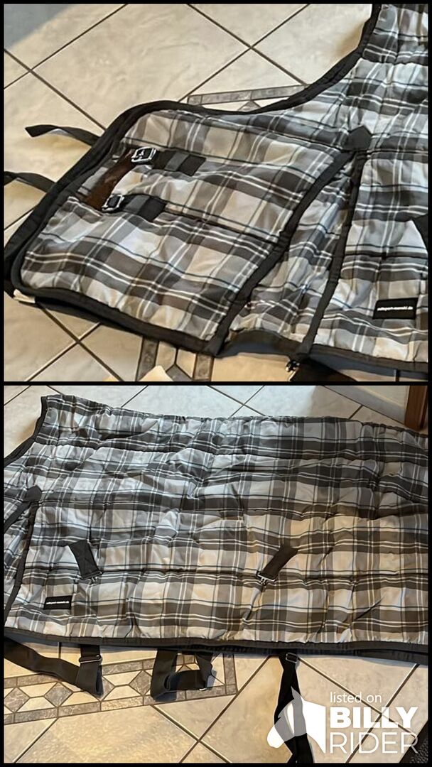 Derka dla koni 300g - Sprzedam derkę stajenną z wypełnieniem 300g. Koc ma długość pleców 125 cm.