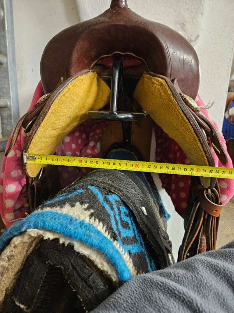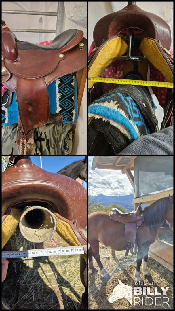 Deuber and Partner Pony Special - Bardzo ładne, dobrze utrzymane siodło western. Pasuje na kuca o szerokości 132cm z lekką krzywizną grzbietu. Krótkie siodło poniżej 60cm, idealne dla niższych koni.