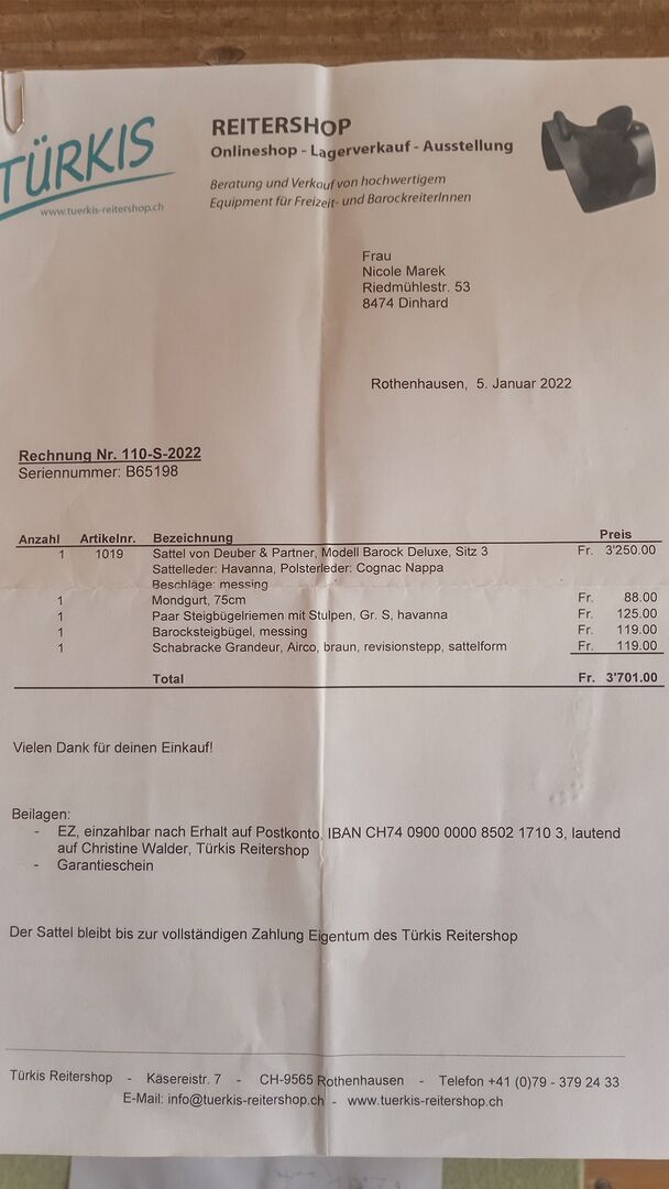 Deuber Baroque Delux - Sprzedaję mój bardzo ładny Deuber Barock Delux, bardzo mało używany z powodu kontuzji, jeszcze nie w pełni osiadł, został już raz zoptymalizowany przez saddle fitter pod względem wyściółki. Rozmiar siedziska 3, można go bezstopniowo regulować i dostosowywać, dlatego nadaje się również dla młodych koni. Bez strzemion, z oryginalną klapą siodła. Siodło można przetestować w mojej łatwo dostępnej okolicy.