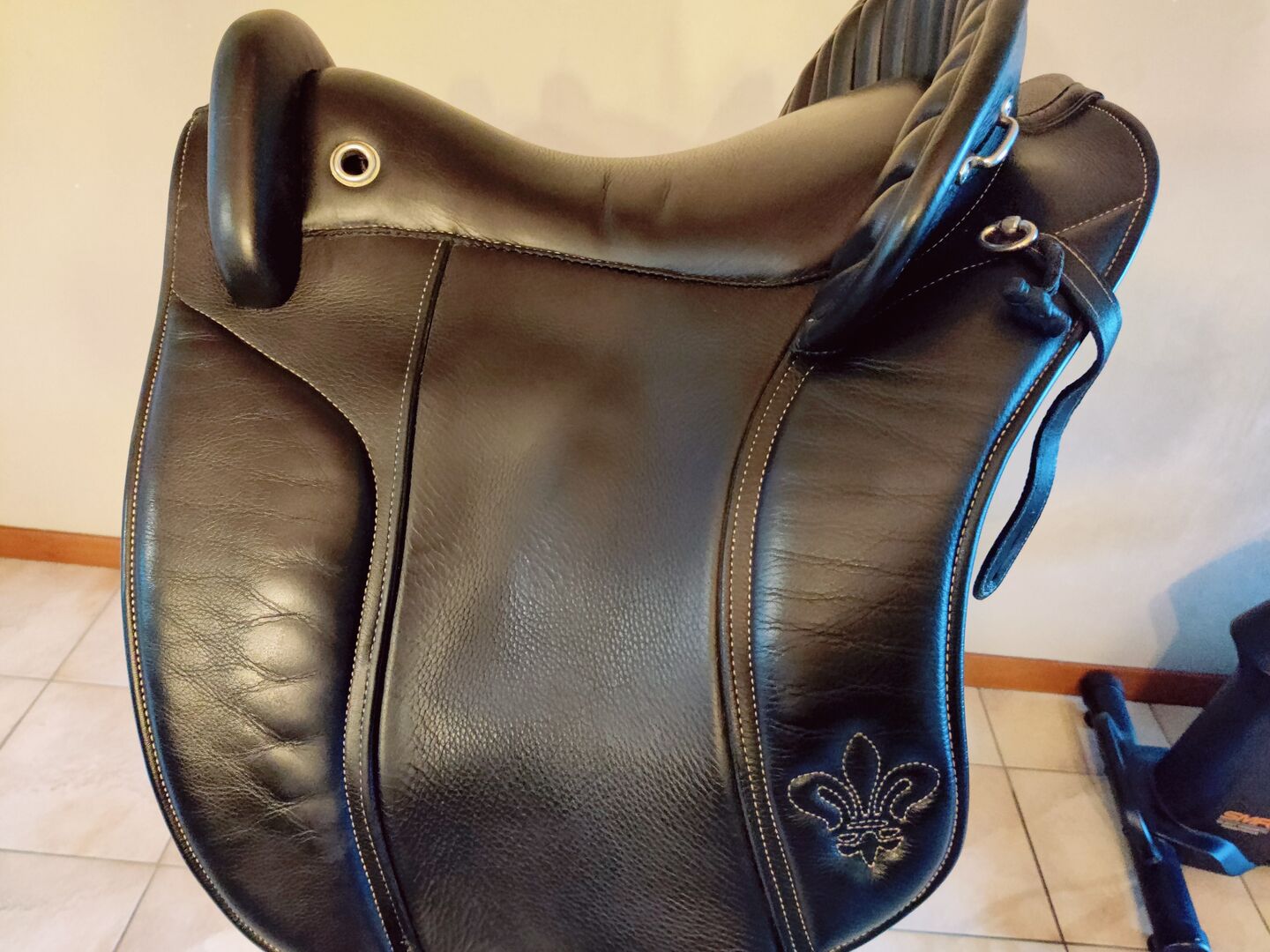 Piękne barokowe siodło opracowane przez Deuber & Partner. Nadaje się do ujeżdżenia, jazdy konnej lub rekreacji.