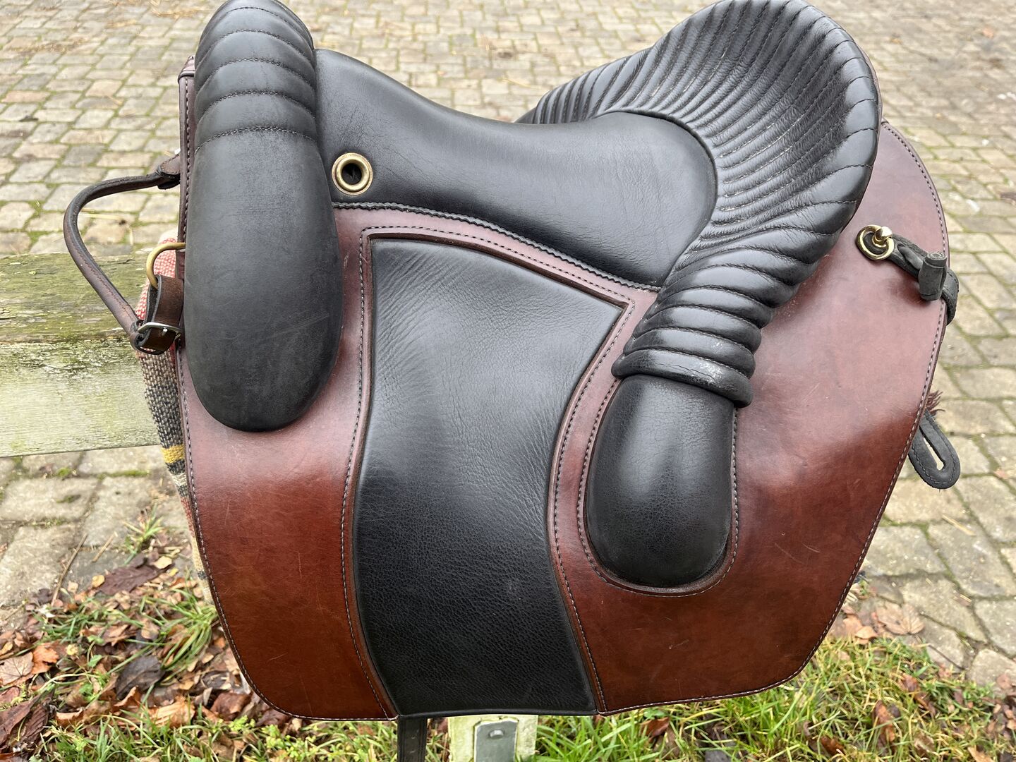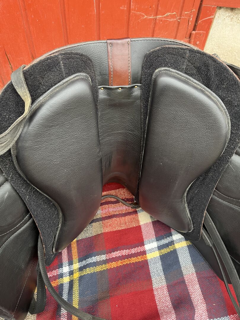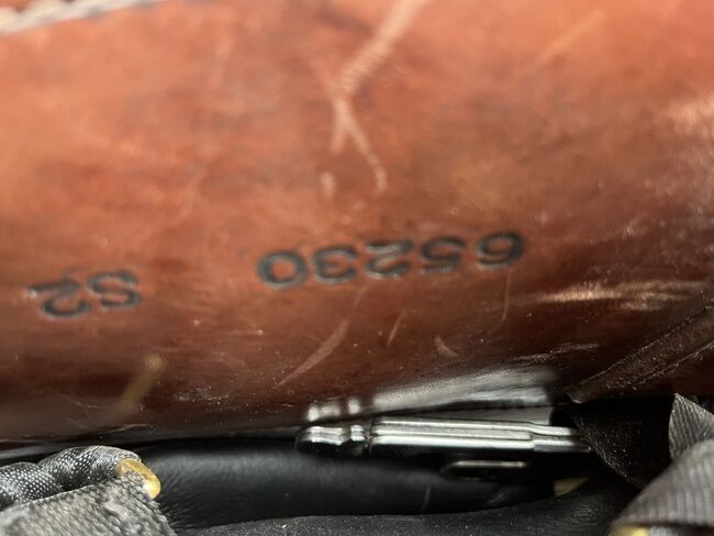 Stelaż: Stelaż Ultra-Flex Szerokość komory: bezstopniowa regulacja szerokości komory Rozmiar siedziska: S2 Skóra siodła: Havana Skóra siedziska/galerii: czarny nubuk, który zapewnia lepszą przyczepność siedziska Okucia: Mosiądz Waga: około 7,5 kg