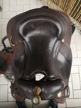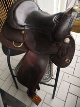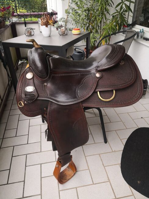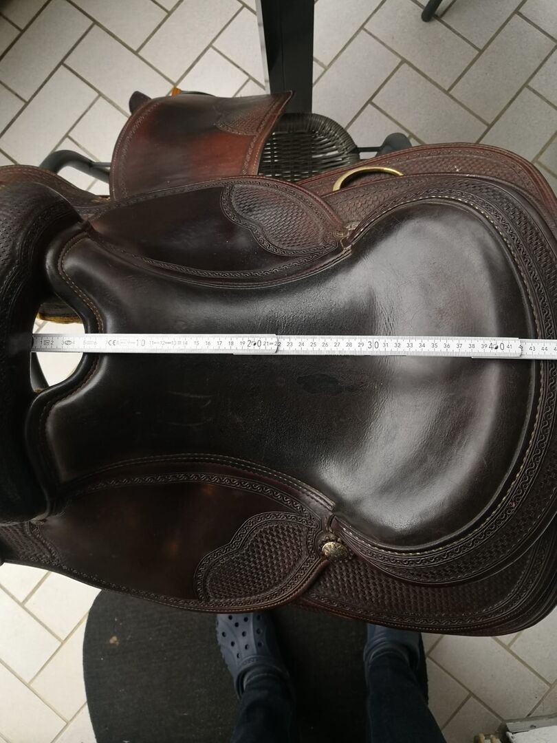 Deuber & Partner (DP) Super wygodne siodło western, 16,5 " - Oferuję świetne siodło westernowe DP. Niestety mój koń z niego wyrósł i jest teraz za wąskie w łopatce. Mieliśmy kilka świetnych długich jazd, siodło jest super wygodne, dołączam drewniane strzemiona, jak na zdjęciach, oraz mój popręg westernowy FeatherFlex 32" od Classic Equine. Odbiór pożądany. Można również jeździć próbnie, jeśli cena zakupu zostanie zdeponowana.