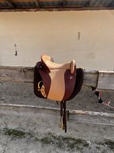 Akcesoria: Szyta na miarę Zalea w kolorze brązowym firmy Christ, podwieszki strzemion z gładkiej skóry firmy Arador, oryginalne klapy siodła, skóry strzemion w tym samym kolorze i z tego samego materiału co paski popręgu firmy Equinate, strzemiona wytoczone z mosiądzu firmy Peter Pfister