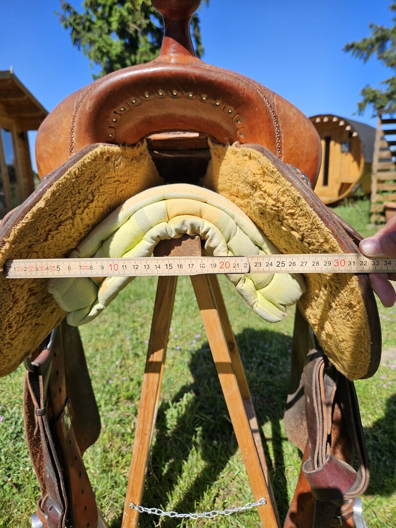 Diamond C Western Saddle - Oferuję siodło westernowe Diamond C, ponieważ mój koń nabrał dużo mięśni i potrzebuję nowego siodła. Było na moim kłusaku, który ma podniesiony kłąb, jeszcze 4 miesiące temu. Siodło jest nadal w idealnym stanie, ale ma kilka zadrapań (patrz zdjęcia). Szerokość łęku wynosi 18 cm.
