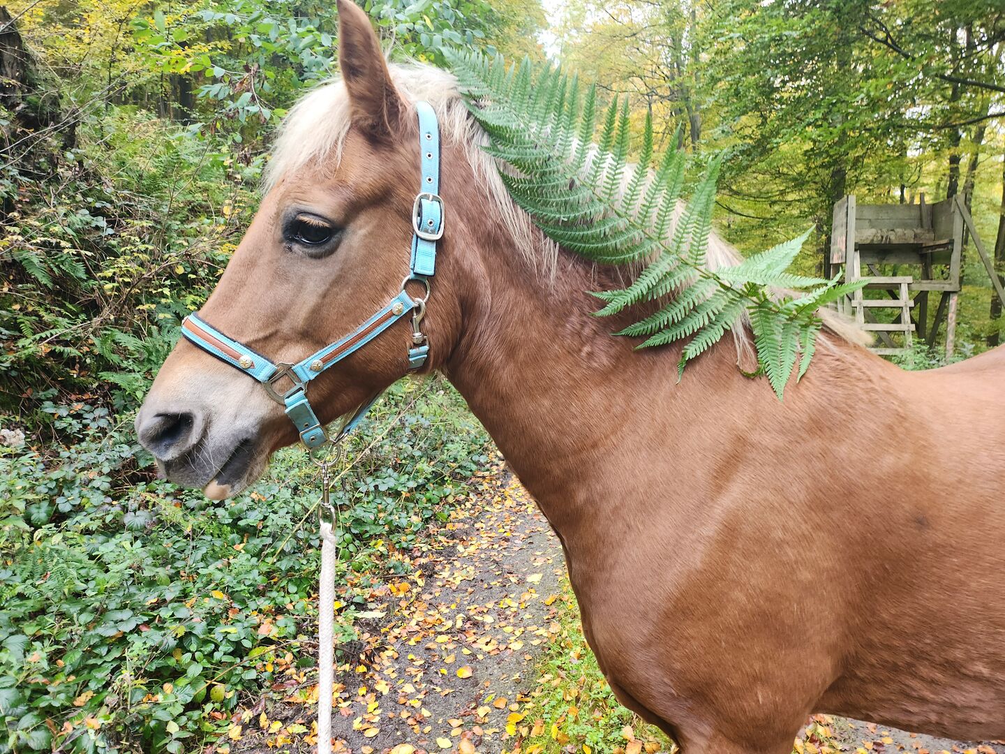 Nie jest to czysty kuc dla początkujących, ponieważ jest dość szybka w ruchu. Ale jeśli to lubisz, możesz mieć z nią dużo zabawy. Preferuje jazdę w terenie na luźnej wodzy. Ale można z nią również dobrze pracować na arenie. Wkłada wiele wysiłku w pracę u podstaw, a obecnie pracujemy nad jej pozycją i zginaniem. Nie chodzi i nie jest szczególnie płochliwa. Boi się jednak dużych, głośnych pojazdów, takich jak traktory.