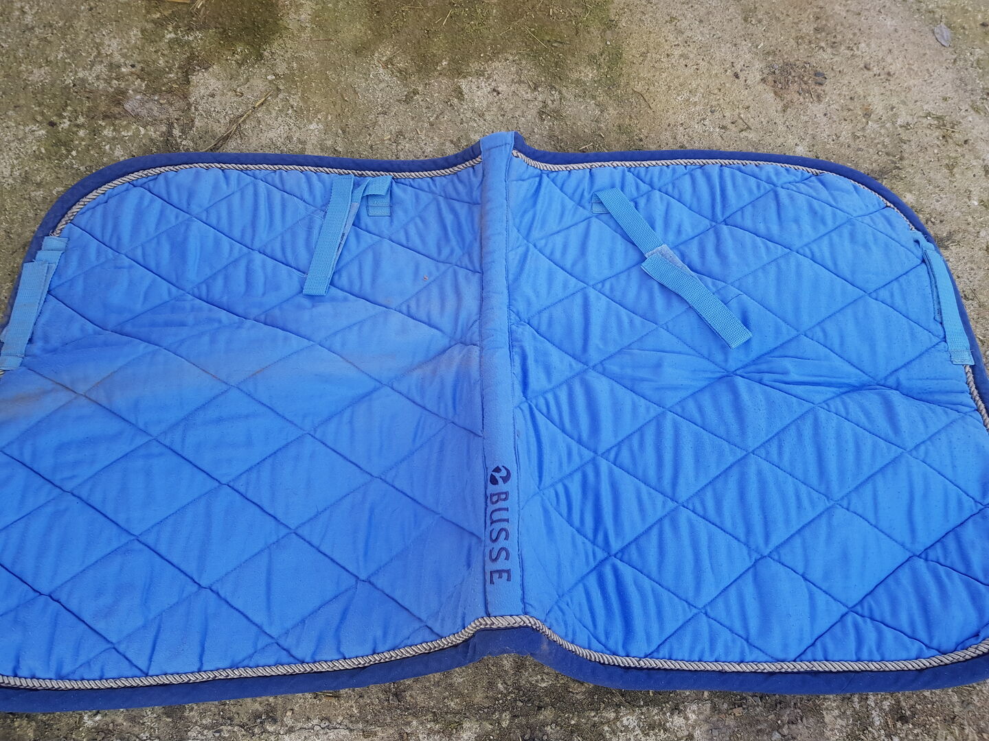 DR Saddle Pad od Busse - Używany pad pod siodło ujeżdżeniowe z lekkimi śladami, ale bez uszkodzeń w świetnym kolorze. Marka: Busse Noszona na koniku warmblood. Powinien być tylko wyprany. Nie była już używana. Po prostu leży w szafie.