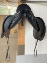 Dressage Andaluz - Premium Line Dressage - Gładka skóra 17,5" czarna - Super wygodne siodło ujeżdżeniowe idealnie nadające się dla koni o krótkiej długości siodła, komfortowe panele zapewniają bardzo dobre rozłożenie ciężaru, elastyczny łęk, regulowany, szerokość komory 32, z systemem Secusad, ukryte rozwiązanie Amazon, rolki Velcro, pierścienie napierśnika, ozdobne szwy, jeżdżone przez jeźdźca rekreacyjnego przez 7 lat, coroczna konserwacja przez wyspecjalizowanego rymarza z Iberosattel. Kilka małych śladów gryzienia na klapie siodła, poza tym w doskonałym stanie. Długie paski do popręgu. Nowa cena 3.300 €.