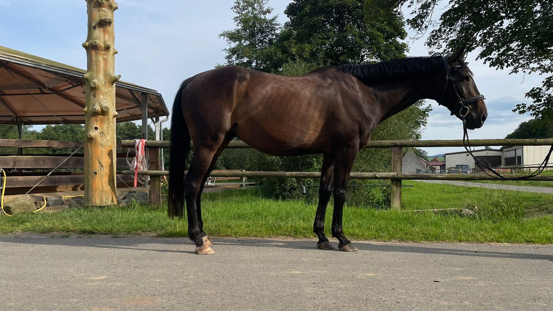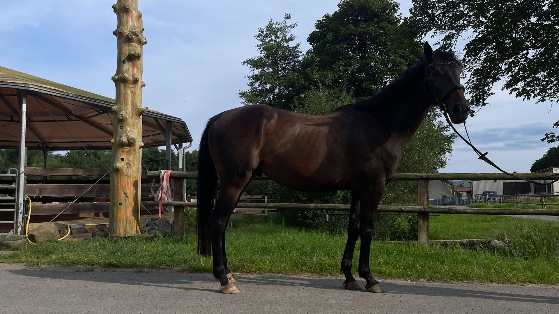 Drogi wałach dla młodych i starszych - Lokalizacja: 98593 Floh-Seligenthal Z ciężkim sercem szukamy nowego domu dla tego uroczego irlandzkiego wałacha sportowego, w którym nie musi już osiągać najlepszych wyników. Swallow urodził się w 2016 roku i ma 165 cm wzrostu. Ma uroczy, dobrze wychowany charakter. Jest dobrze wychowany i może być obsługiwany przez dzieci i młodzież. Wałach jest przyzwyczajony do przebywania w boksie z dostępem do pastwiska, ale również pasie się 24 godziny na dobę. Jego poziom wyszkolenia to E-A. Lubi również jeździć w terenie i jest bezpieczny. Jaskółka nadaje się dla początkujących, ma silne nerwy pod jeźdźcem i wybacza wiele błędów pod siodłem. Podsumowując, po prostu świetny koń na wiele przyjemnych godzin w siodle. Ale teraz pojawia się punkt krytyczny. Ma stare, skostniałe naderwanie mięśnia na początku pęciny. Według weterynarza można na nim jeździć we wszystkich trzech chodach. Nie powinien jednak skakać ani nadmiernie galopować. Dlatego jest sprzedawany prywatnie jako warunkowo jeżdżący.