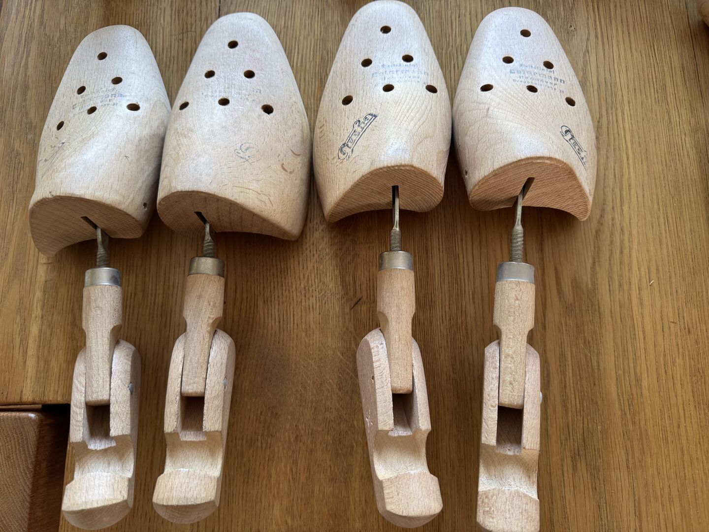 Drzewka do butów jeździeckich - Do butów jeździeckich, regulowane, z przegubem, wykonane z drewna, stan bardzo dobry, cena za parę 8€, dostępne są 2 pary tego modelu