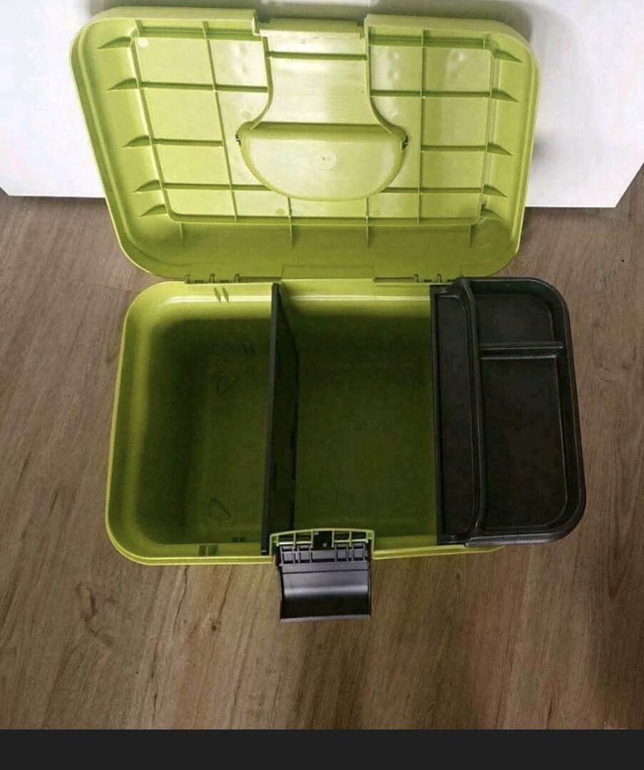 Duże pudełko do pielęgnacji z zestawem do pielęgnacji - Wysokiej jakości pudełko do pielęgnacji wykonane z tworzywa sztucznego pochodzącego z recyklingu. Chowana rączka, zamykana na zatrzask, 2-komorowa regulowana przegroda, wysuwana przegroda na drobne części, w zestawie naklejka do indywidualnego oznaczenia i zestaw do pielęgnacji. ok. 42 cm szer. 42 cm wys. 30 cm gł. 28 cm