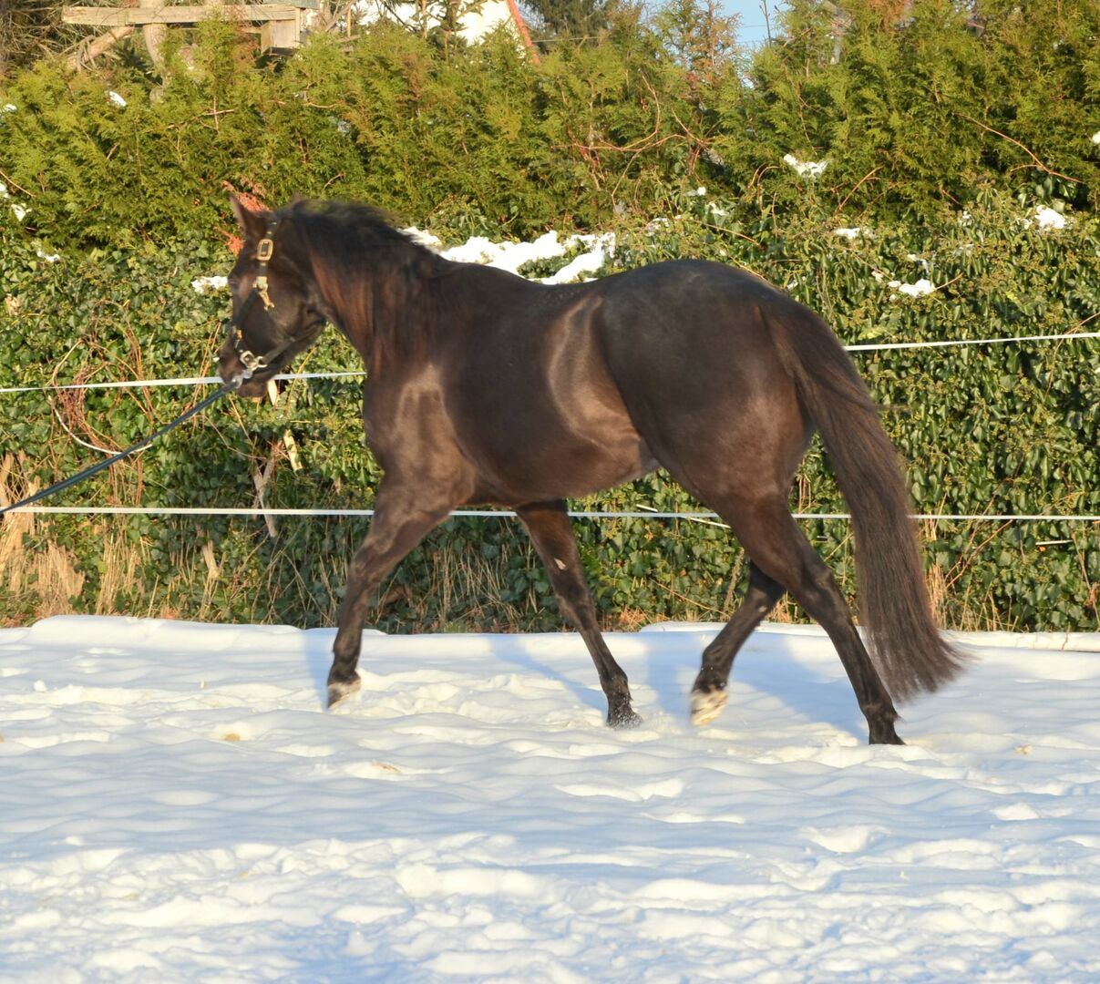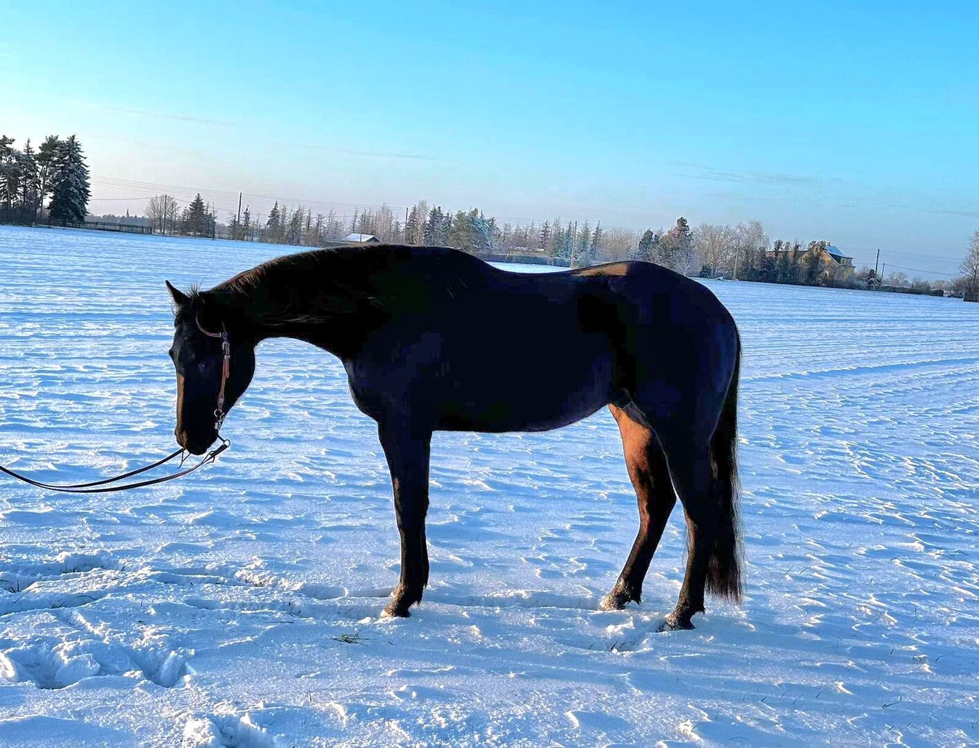 Duży, piękny wałach rasy Quarter Horse - Na sprzedaż jest Voodoo, czteroletni wałach rasy Quarter Horse. Ma kolor par excellence: czarny. I bez żadnych oznaczeń. Voodoo to krępy koń o harmonijnej sylwetce. Jego długa grzywa sprawia, że przyciąga wzrok. Ma 155 cm wzrostu, dzięki czemu z łatwością poradzi sobie z wyższymi i/lub cięższymi jeźdźcami. Dzięki długim i prostym nogom odpowiada nowoczesnemu typowi wszechstronnego konia sportowego. Czarny ogier jest bezpośrednim synem Shiners Voodoo Dr. (3 Million Dollar Sire) od klaczy Topsail Whiz. Rodowód najwyższej jakości. Voodoo cieszył się podstawowym treningiem w profesjonalnym jeździectwie. Nie jest wyeksploatowany, zaczął późno i delikatnie, miał wystarczająco dużo czasu na rozwój i wzrost. Wszystkie podstawowe chody zostały solidnie wykonane, a manewry rozpoczęte z łatwością. Jest nieskomplikowany w jeździe, zawsze pokazuje bardzo ładny ruch pod siodłem i jest wygodny w dosiadzie. W pracy Voodoo jest chętny do działania i raczej wrażliwy. Przez cały czas uważnie i precyzyjnie reaguje na pomoce, ale nie staje się przy tym nerwowy. Wałach jest entuzjastycznie nastawiony do trailu i urozmaiconej jazdy. Dzięki swojemu miłemu usposobieniu Voodoo będzie również dobrym partnerem rekreacyjnym dla jeźdźców bez większych ambicji. Nie jest impulsywny ani zbyt szybki, ma dobrą wytrzymałość i może z łatwością stać w miejscu przez kilka dni. Charakter Voodoo jest otwarty na nowe znajomości i chętnie uczestniczy w pracach ziemnych. Lubi też długie spacery ze swoim właścicielem. Podczas jazdy "sam na sam" w nieznanym otoczeniu czasami reaguje nieco niepewnie ze względu na swój młody wiek i wtedy szuka uspokojenia u swojego jeźdźca. Zawsze woli stać w miejscu niż uciekać. Voodoo to prawdziwy dżentelmen w obsłudze, zawsze gotowy do zabawy i uważny. Szuka uwagi swoich ludzi, uwielbia być pielęgnowany i uwielbia się przytulać (nawet bez marchewki). Jest dobry w wieszaku i do tej pory widział tylko weterynarza w celu szczepień / kontroli zębów. Zostanie sprzedany tylko z powodu braku czasu i tylko najlepszemu właścicielowi. Lokalizacja: 04315 Lipsk