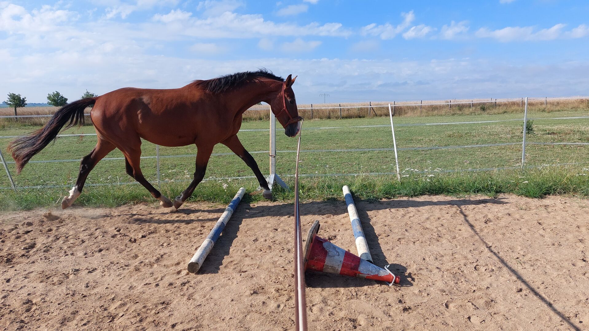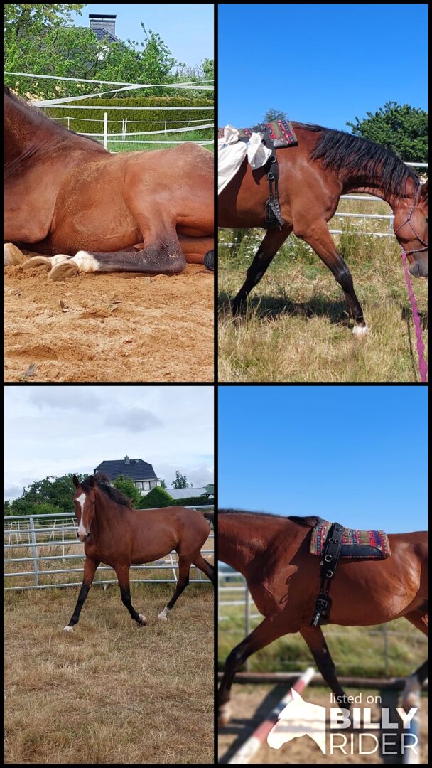 Duży wałach - Ten ok.177 duży łamacz serc, który jest bardziej psem niż koniem, szuka idealnego domu na całe życie. Ma 6 lat i mieszka z 2 innymi klaczami i shettys w otwartej stajni, tak powinno pozostać. Nie był jeszcze jeżdżony ze względu na długi wzrost i mało czasu, ale zostanie przygotowany delikatnie i zdrowo (wszystko całkowicie bez bitów).