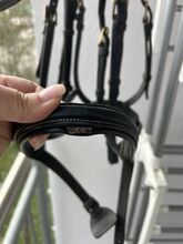 DYON ENGLISH COMBINED SNAFFLE DIFFERENCE THERAPEUTIC NEC - DYON ENGLISH COMBINED SNAFFLE DIFFERENCE THERAPEUTIC NEC - specjalna uzda dla koni, które mają problemy z kręgami szyjnymi - naczółek i popręg są wykonane w jednym kawałku, aby odciążyć 1. i 2. kręg szyjny - pasek na gardło jest połączony z paskiem na nos, aby zapewnić, że nagłówek znajduje się za drugim kręgiem szyjnym - posiada miękką skórzaną naszywkę chroniącą krtań - uzda siedzi prawidłowo, gdy smycz gardłowa znajduje się blisko policzków - dołączony jest również pasek blokujący o szerokości 13 mm, który można zdjąć w dowolnym momencie - Uzda ma prosty i elegancki wygląd dzięki jednokolorowym szwom i okuciom ze stali nierdzewnej. Instrukcje użytkowania - Nie nadaje się dla koni, które nie wykazują oznak problemów z 1. i 2. kręgiem szyjnym. - Przed użyciem należy skonsultować się z weterynarzem - Wodze nie wchodzą w zakres dostawy materiał - miękka skóra owcza - sprzączki ze stali nierdzewnej - jednokolorowa przędza