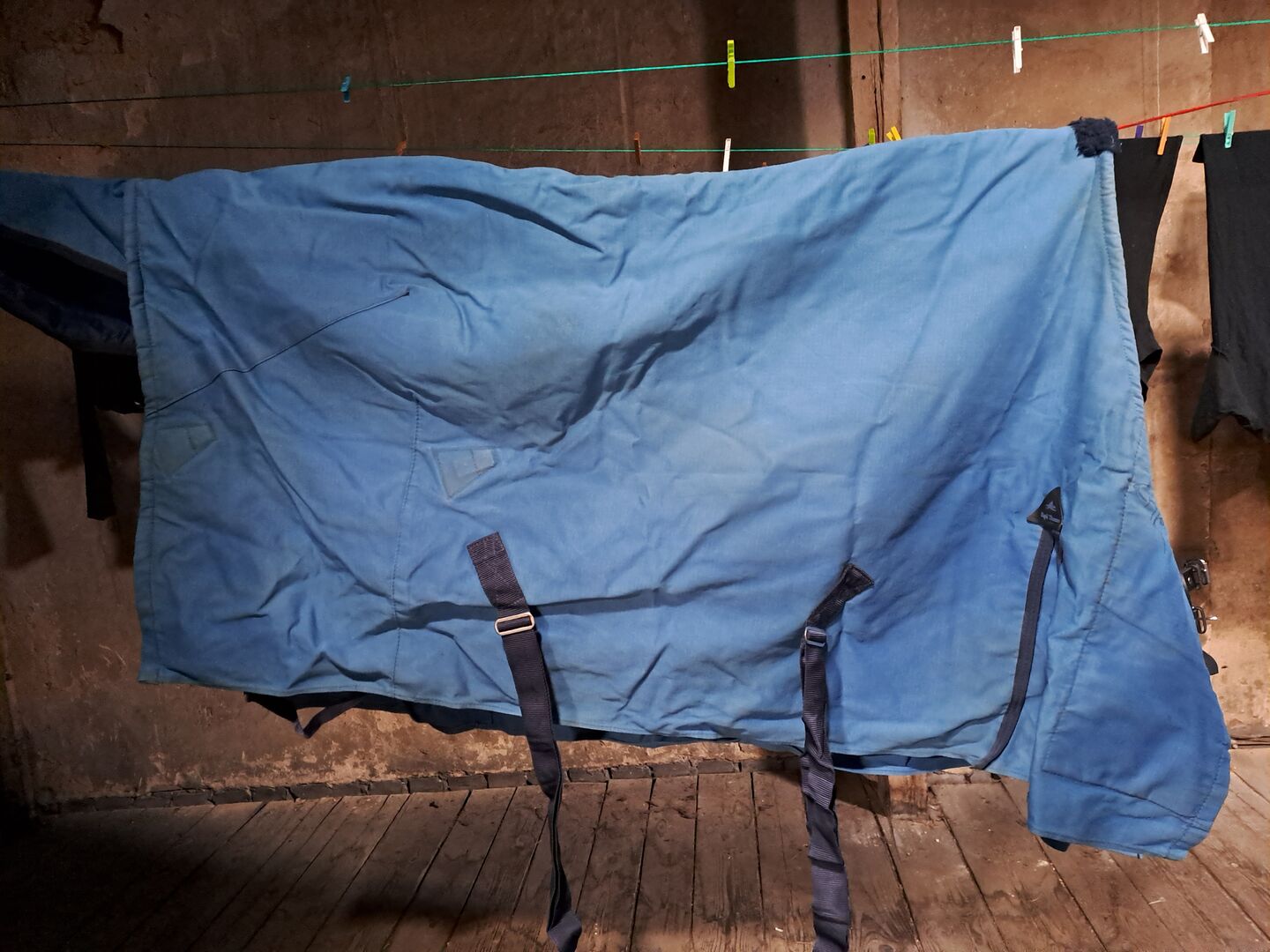 Dywan zimowy z wełnianą wkładką 155 cm Equi Theme - Używana derka zimowa na sprzedaż, ponieważ nie pasuje na mojego nowego konia. Jest to stajenna derka zimowa z wełnianą wkładką. Zamiast zwykłych zapięć, derka jest zapinana na skórzane paski. Posiada regulowane paski na nogi z tyłu i 2 paski na brzuch. Dywanik jest w dobrym stanie. Został wyprany i zdezynfekowany.