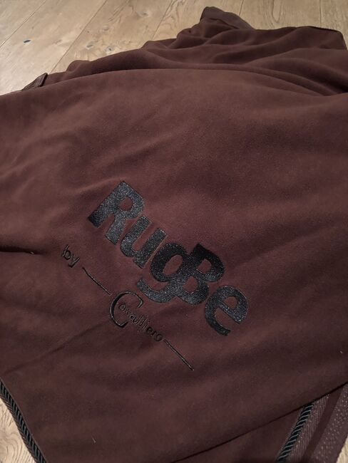 Dywanik 155 cm z futrzanym kołnierzem - Zupełnie nowy polarowy dres z przytulnym futrzanym kołnierzem rozmiar 155 brązowy Zapięcie na klatce piersiowej, poprzeczne paski na brzuchu, pętla na ogon Mega ładny dywanik od RugBe by Covalliero Nigdy nie używany!