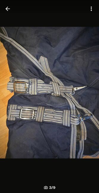 Dywanik dla konia 145 z polarową podszewką - Oferuję na sprzedaż derkę dla konia w rozmiarze 145. Derka nie ma żadnych uszkodzeń. Brakuje tylko jednego paska na nogę. Ale mam nową parę pasków na nogi. Brak dziur itp. W derce. Dywanik ma polar od wewnątrz. Pasy brzuszne są również nienaruszone. Najlepiej odbiór w Recklinghausen. Sprzedaż prywatna, dlatego nie ma gwarancji, gwarancji ani zwrotu.