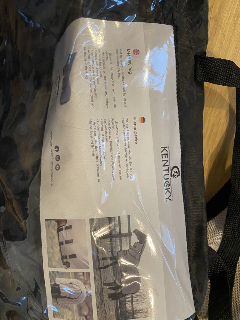 Dywanik muchowy Kentucky 130 cm - Oferuję dywanik na muchy Kentucky w idealnym stanie wraz z odpinaną częścią na szyję. Dywanik był noszony tylko przez dwa dni i został świeżo wyprany. Nie ma żadnych dziur.