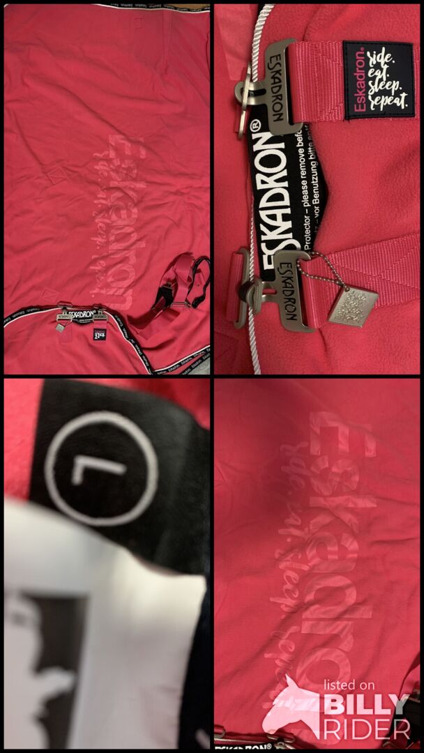 dywanik potowy 145 - Sprzedaję derkę potową eskadron, miałam ją na koniu tylko raz na przymiarkę, ale niestety nie pasuje. Jest to rozmiar L (145). Przedtem należy ją jeszcze raz wyprać, ponieważ jest na niej kilka włosów. Pierwotna cena wynosiła 89,95 EUR.