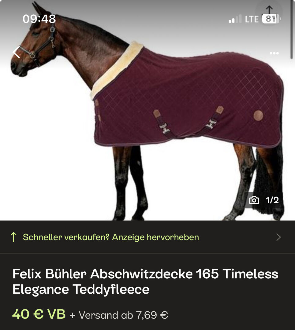 Hi Annika, I am interested in your ad 'Abschwitzdecke 165cm / Felix Bühler Timeless Elegance Teddyfleece'. Please contact me! 😀