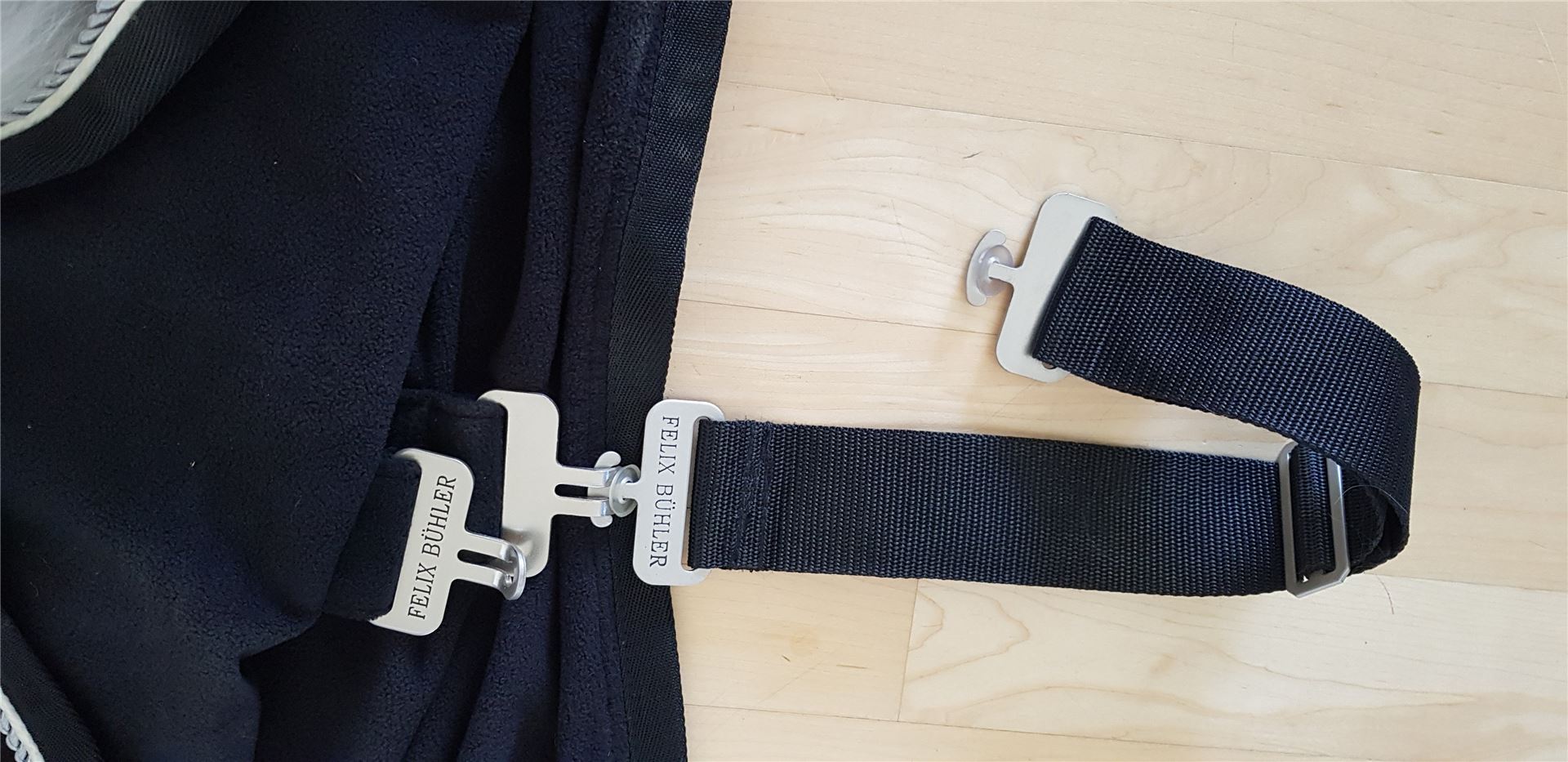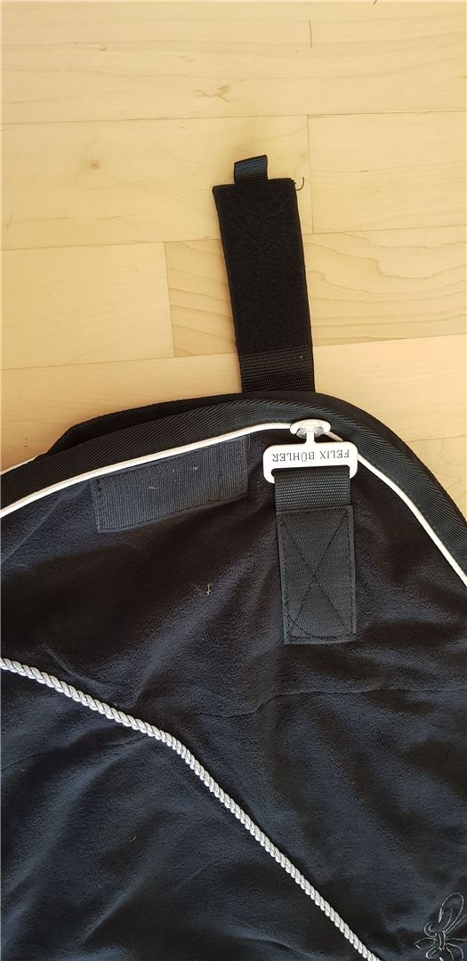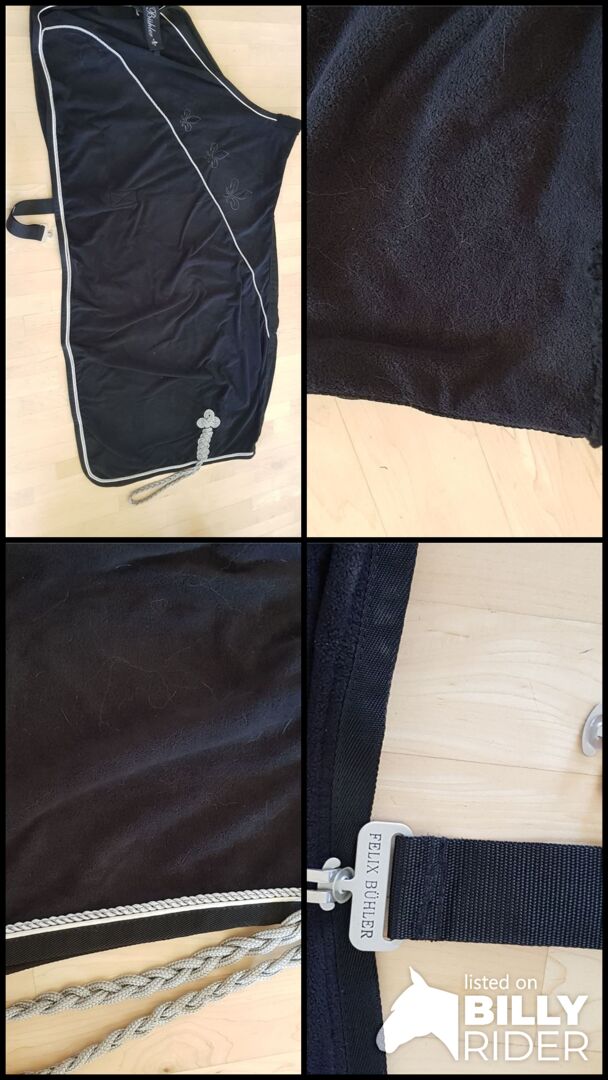 Dywanik potowy, dywanik paradny, czarny, 135cm - Sprzedam dywanik Felixa Bühlera w doskonałym stanie, z odpinanym paskiem na brzuch. Kocyk był na koniu kilka razy i jest świeżo wyprany, ponieważ moje koty uważały go za bardzo ekscytujący podczas robienia zdjęć.