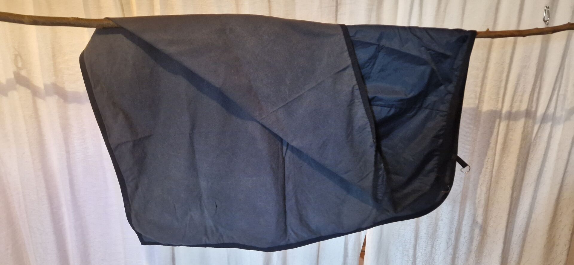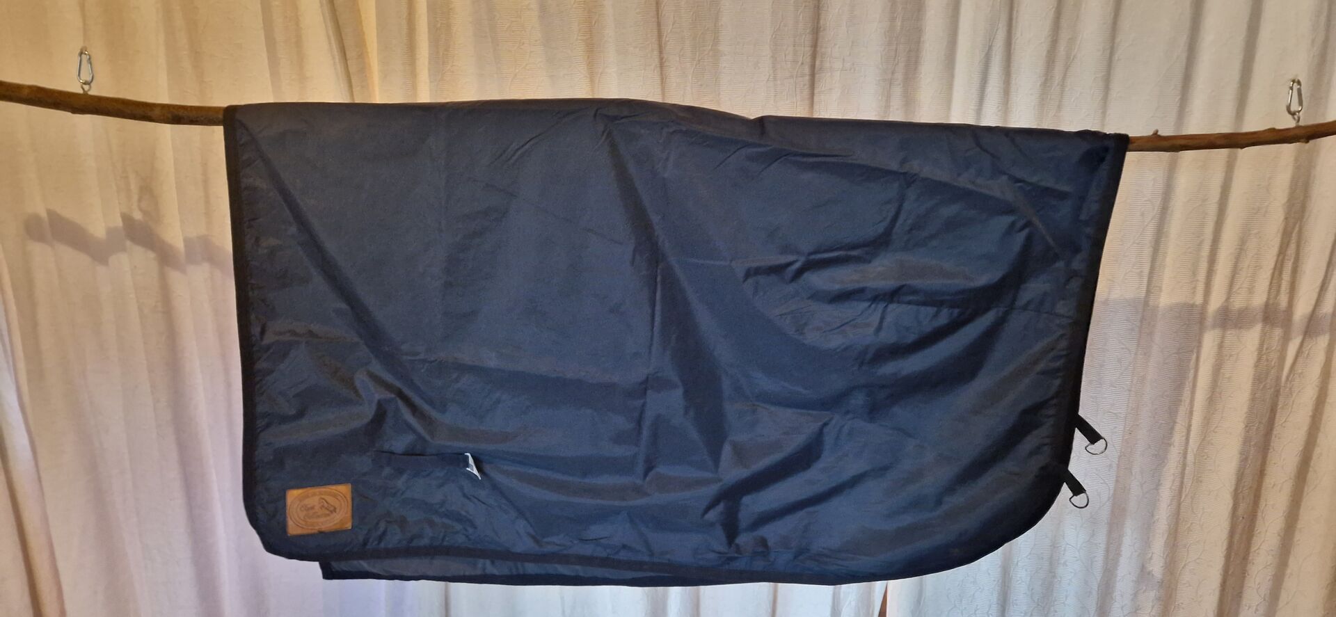 Dywanik przeciwdeszczowy Clyst 130cm - Ta używana derka przeciwdeszczowa Clyst mierzy 130 cm i jest dostępna w pięknym niebieskim kolorze. Jest idealna na mokre warunki pogodowe, ponieważ jest wodoodporna. Derka nerkowa/jeździecka jest idealna na przejażdżki w deszczu lub śniegu i chroni boki/nerki konia przed wilgocią, zimnem i wiatrem. Niezbędna dla każdego jeźdźca, który chce jeździć w każdych warunkach pogodowych! Derka posiada 2 pierścienie na popręg. Crupper NIE jest częścią aukcji. Płatność przez znajomych Paypal, przelewem bankowym lub gotówką przy odbiorze.