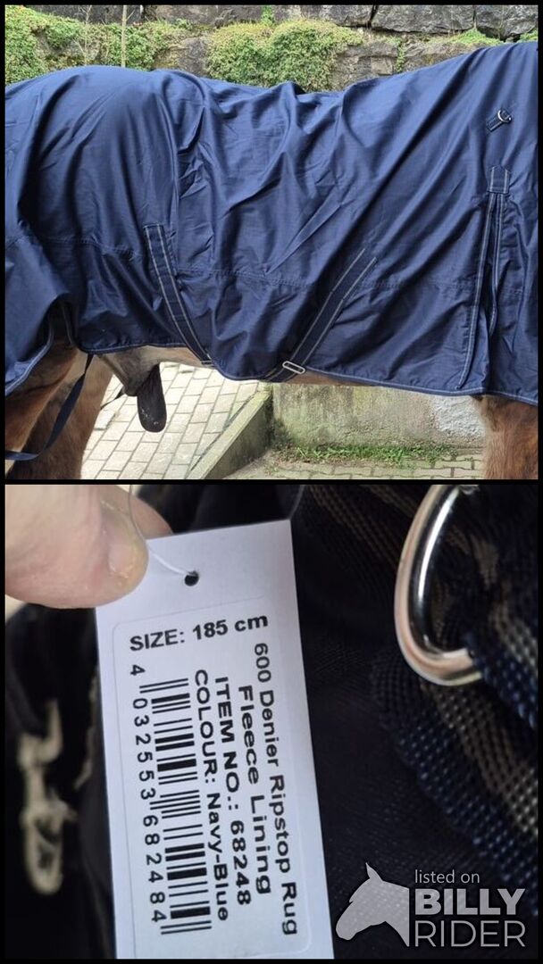 Dywanik przeciwdeszczowy na zewnątrz z polaru 185 cm - Derka była założona na konia tylko na czas przymiarki - oryginalna metka jest nadal przyczepiona.