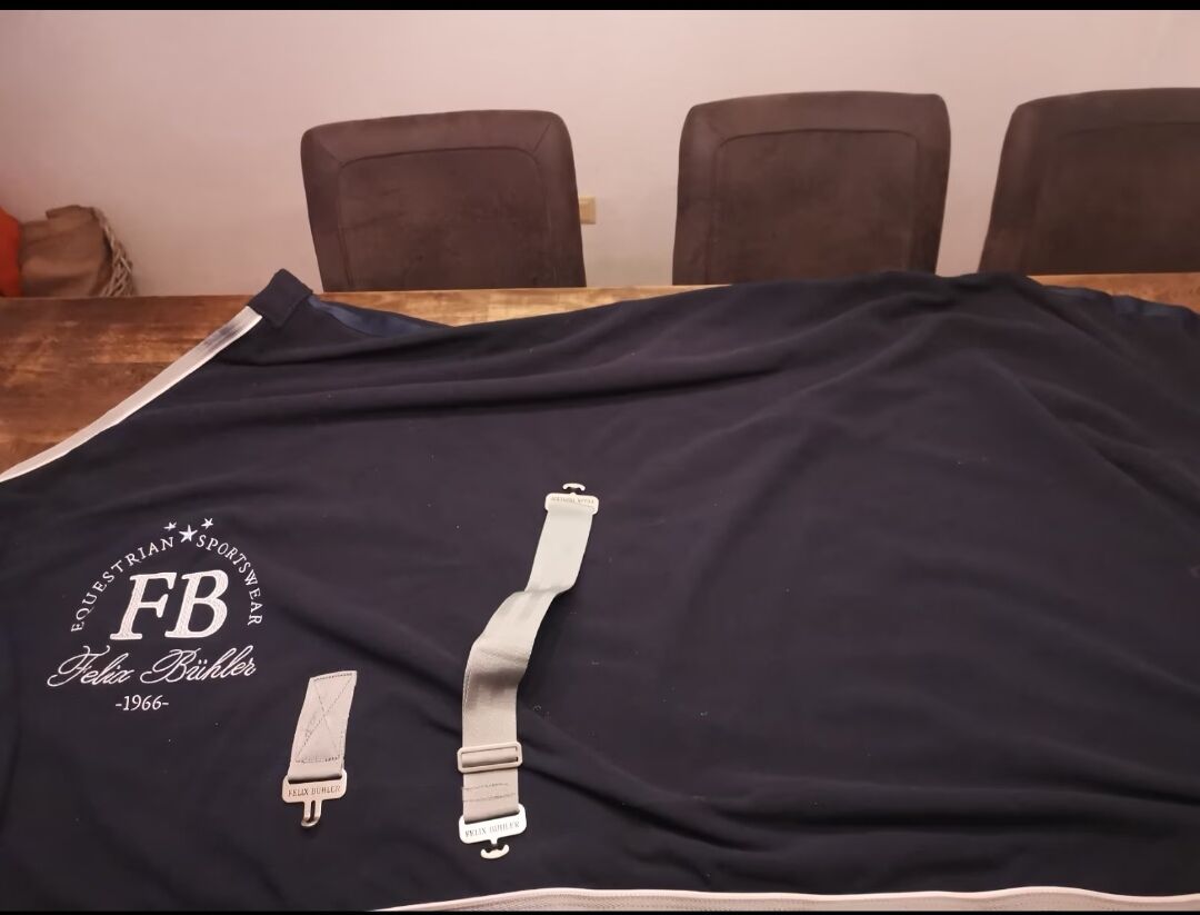 Dywanik przeciwpotny Felix Bühler 145 cm - Raz użyty ciemnoniebieski dres od Felix Bühler. Brakujący zakup, ponieważ zbyt krótki. Naturalnie wyprany bez dziur i innych uszkodzeń.