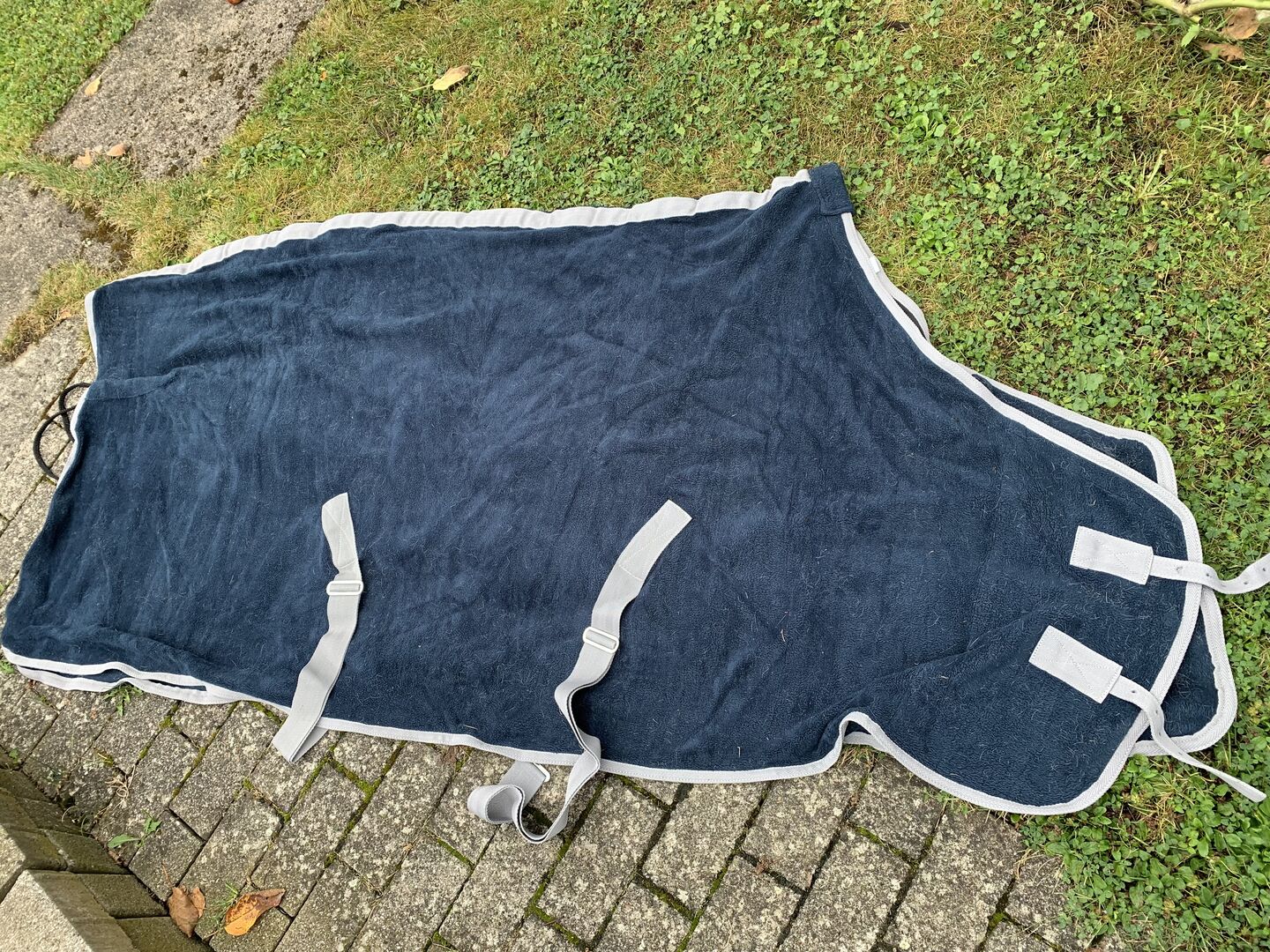 Dywanik przeciwpotny Thermo Master 145 cm - Sprzedam mało używany dywanik przeciwpotny firmy Thermo Master. Po użyciu została profesjonalnie wyczyszczona. Dywan jest w bardzo dobrym stanie, nie ma rdzy ani podobnych śladów na paskach brzusznych, tylko kilka końskich włosów w materiale. Sprzedaż prywatna Możliwość wysyłki za dodatkową opłatą (5€).
