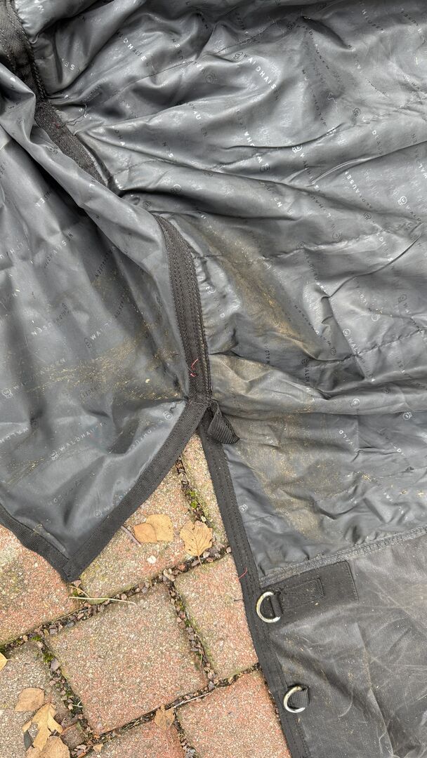 Dywanik zewnętrzny NORDIC, 155cm, 50g - Sprzedaję mój dywan zewnętrzny Waldhausen, który był bardzo mało noszony. Kilka razy był na koniu i nie był prany, dlatego ma kilka plam (patrz zdjęcia). Jest w dobrym stanie, całkowicie nienaruszony i w pełni funkcjonalny. Jest za duża dla mojego konia, więc jest sprzedawana.