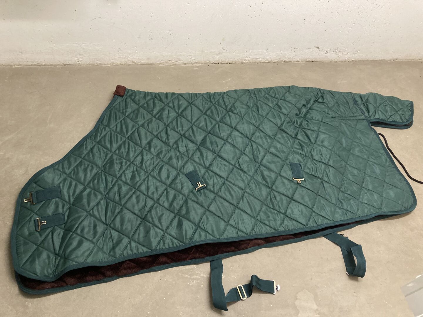 Dywanik zimowy HKM 145 - Bardzo ładna derka stajenna podszyta futerkiem z wypełnieniem 150 g, rozmiar 145, była używana tylko przez 1-2 miesiące.