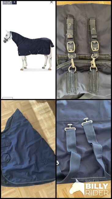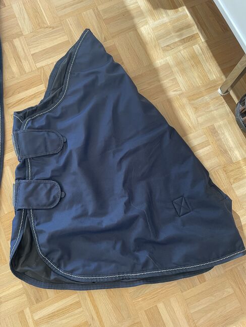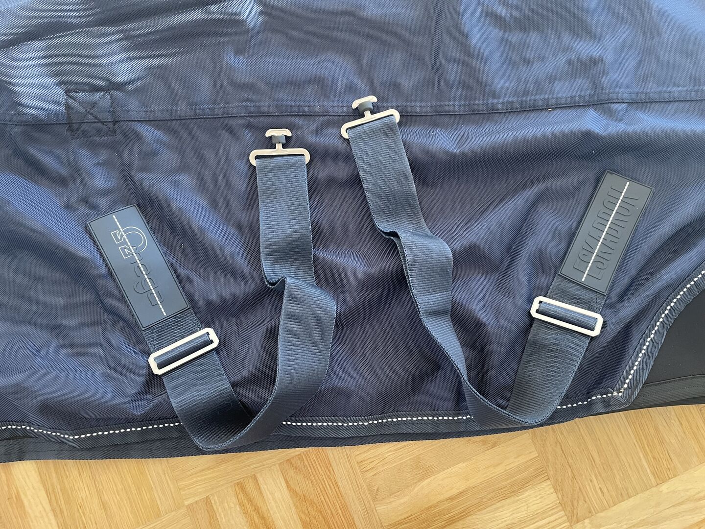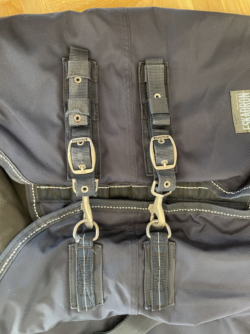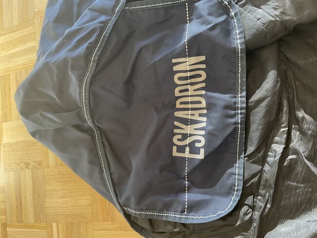 Dywanik zimowy Omega Eskadron 250g 155 - Koc zimowy 250g, rozmiar 155, w tym część szyjna i przedłużenie klatki piersiowej, wyczyszczony, stan bardzo dobry, używany tylko dwie zimy
